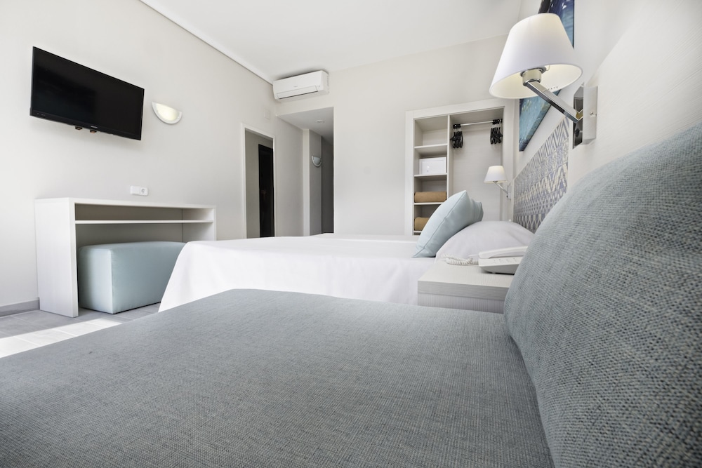 Perfectly located a few metres from the bus station, it has large, bright rooms and a great terrace-swimming pool snack bar where you can continue to enjoy the best atmosphere of Ibiza.Perfect for young people looking for a central and economical hotel. A low cost hotel with all conveniences necessary for your holiday. Room facilities: Full bathroom, private terrace or balcony, air conditioning, TV, safe hire and paid Wi-Fi.This hotel is not recommended for children.Address: Calle Ramon Cajal NÂș5, 07820 San Antonio, Ibiza, Spain.