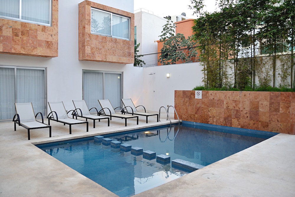 Centrally located in Playa del Carmen, Bambu Suites is minutes from Coco Beach and Mamitas Beach Club. This hotel is within close proximity of Quinta Alegria and Pier Navega.Rooms Make yourself at home in one of the 16 air-conditioned rooms featuring kitchenettes with refrigerators and microwaves. Wired and wireless Internet access is complimentary, and LCD televisions with cable programming provide entertainment. Conveniences include phones, as well as safes and complimentary bottled water. Take advantage of recreation opportunities such as an outdoor pool or take in the view from a rooftop terrace and a garden. Additional amenities include complimentary wireless Internet access, concierge services, and babysitting/childcare (surcharge).Business, Other Amenities Featured amenities include complimentary high-speed (wired) Internet access, express check-in, and express check-out.