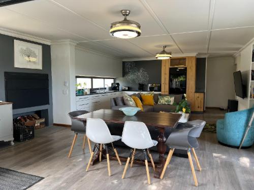 Farm house with spacious entertainment areas for friends and family (max 10 adults & 4 children). Walk around the horse farm or fish /swim in the river. Table Tennis, Card Table, Board Games, DSTV, WiFi and a jungle gym.