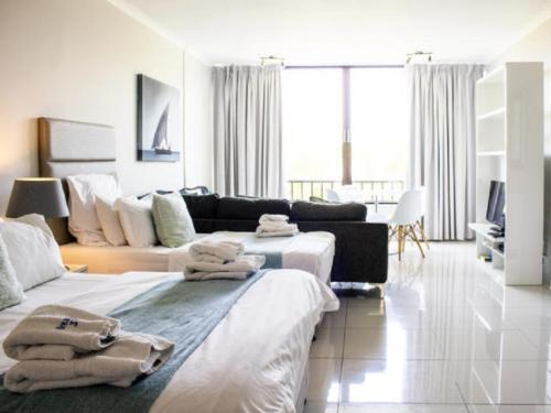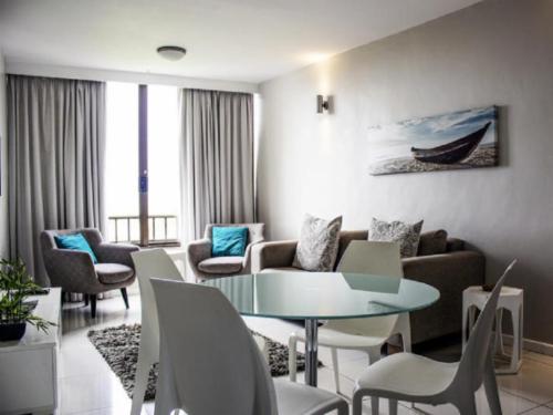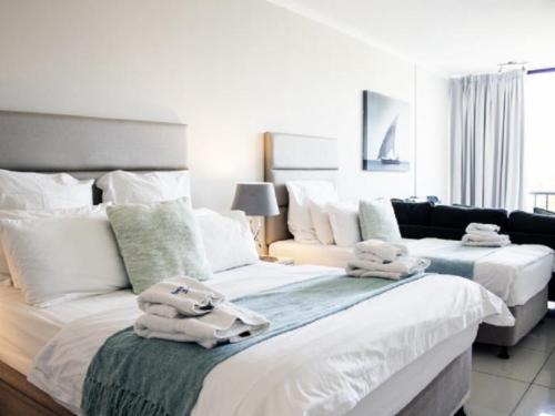 These beautiful apartments are situated in the secure Breakers Resort, in Umhlanga. The resort is family orientated with swimming pools and water slides that will keep guests entertained for hours.The Studio Apartment consists of a queen-size bed and a three-quarter bed in the living area, a fully equipped kitchen, a private bathroom and a seating area with a TV and selected DStv channels. This apartment has two bedrooms; one has a queen-size bed and the other has twin beds. The apartmnent has an open-plan kitchen, lounge and dining area with a flat-screen TV and sele