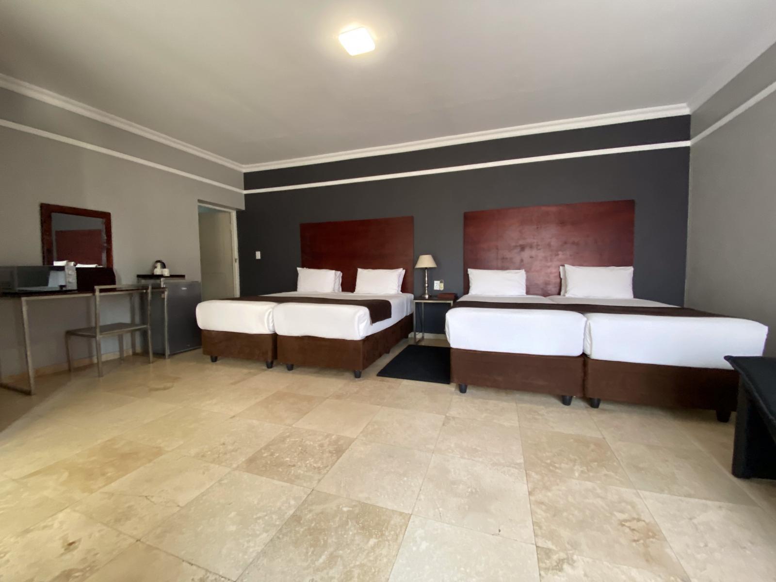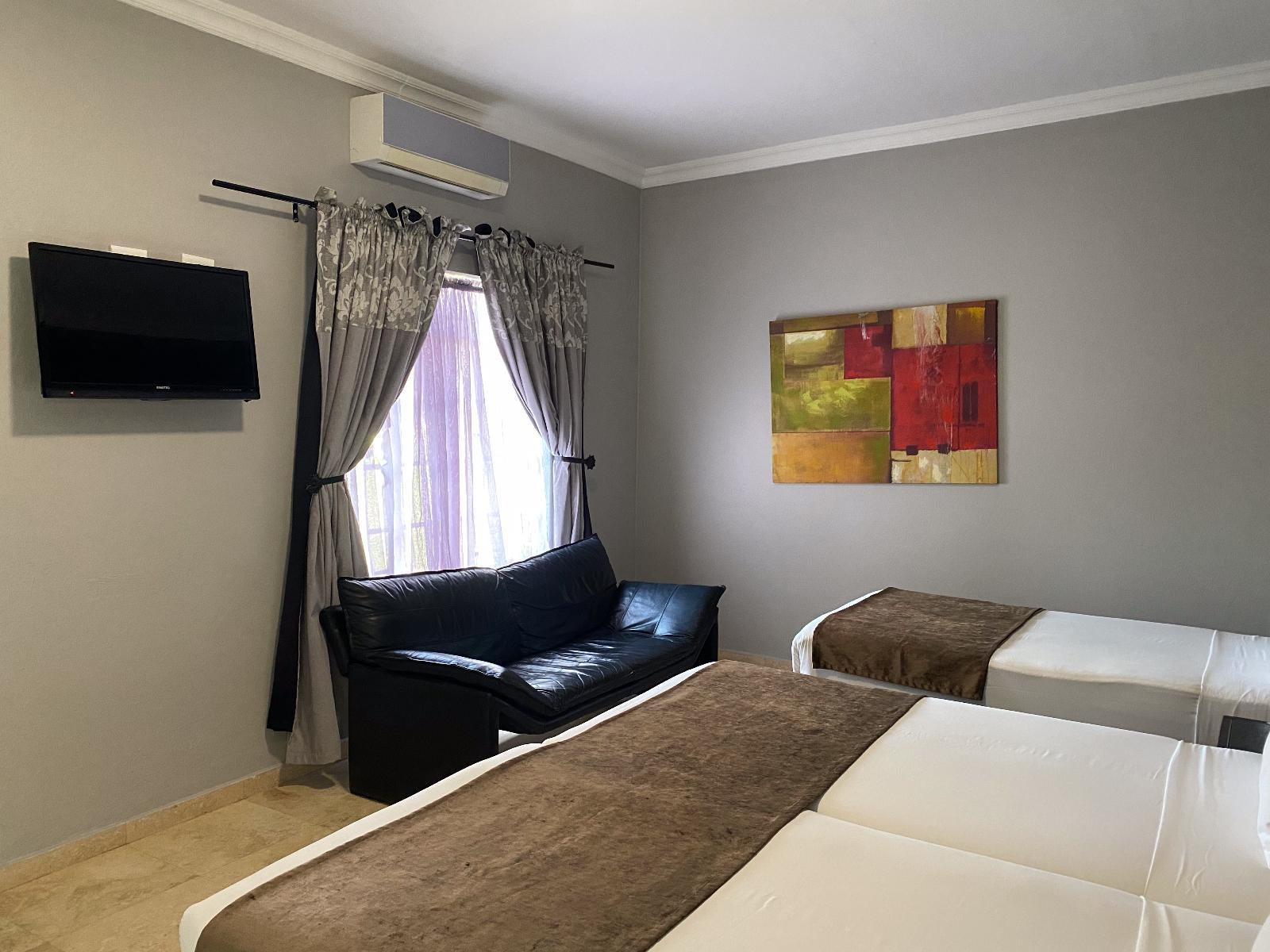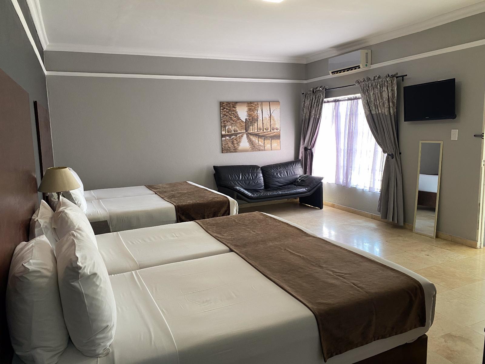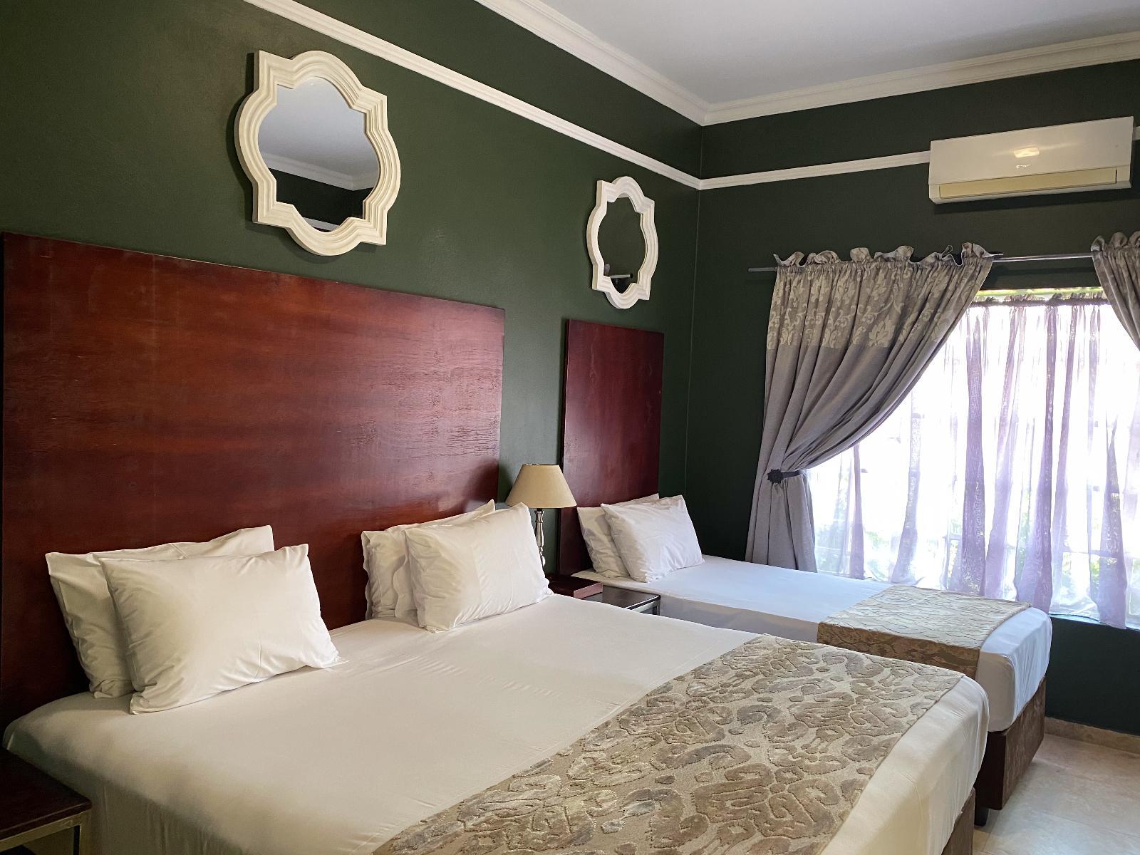 Beaulerland Manor House is a lovely guest house in a lovely garden just 6 km from Ermelo, ideal for business travellers or holidaymakers.Guests have a choice of lovely rooms that can accommodate between 2 to 4 people. The air-conditioned rooms are furnished with comfortable king-size beds that can convert to twin beds on request or a combination of a king-size and a single bed. Each of the rooms has an en-suite shower and a toilet.The rooms feature Satellite TVs, desks, Wi-Fi access, bar fridges and tea and coffee facilities. For convenience bathroom amenities, linen, t