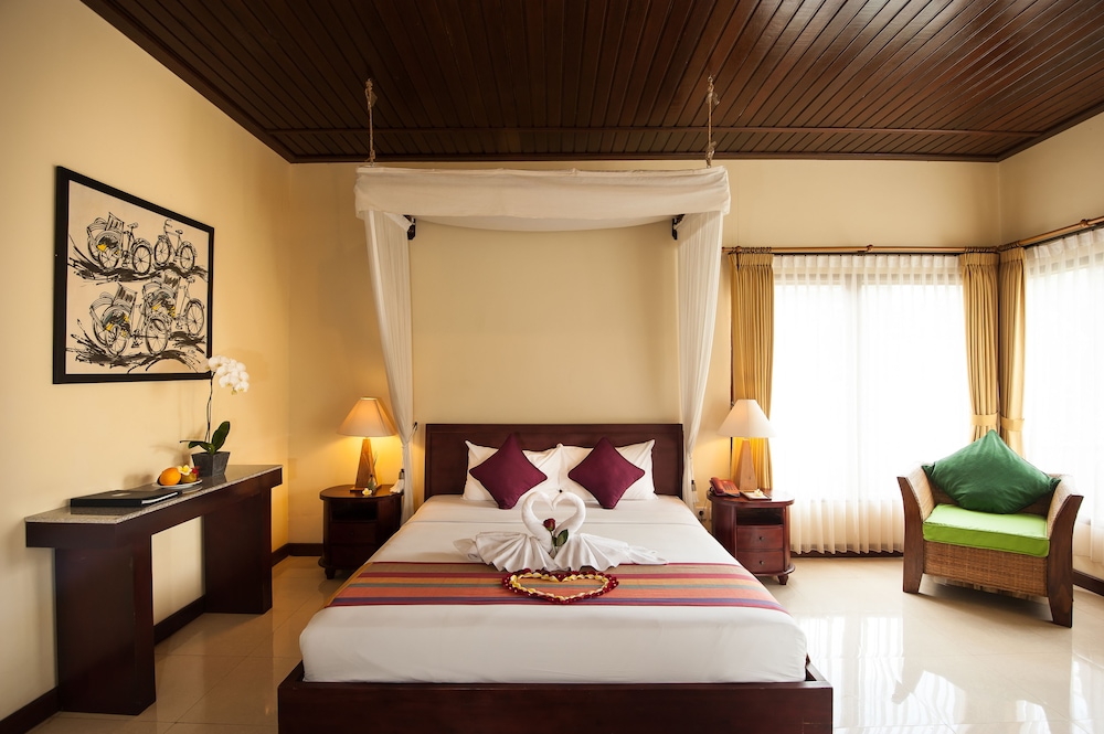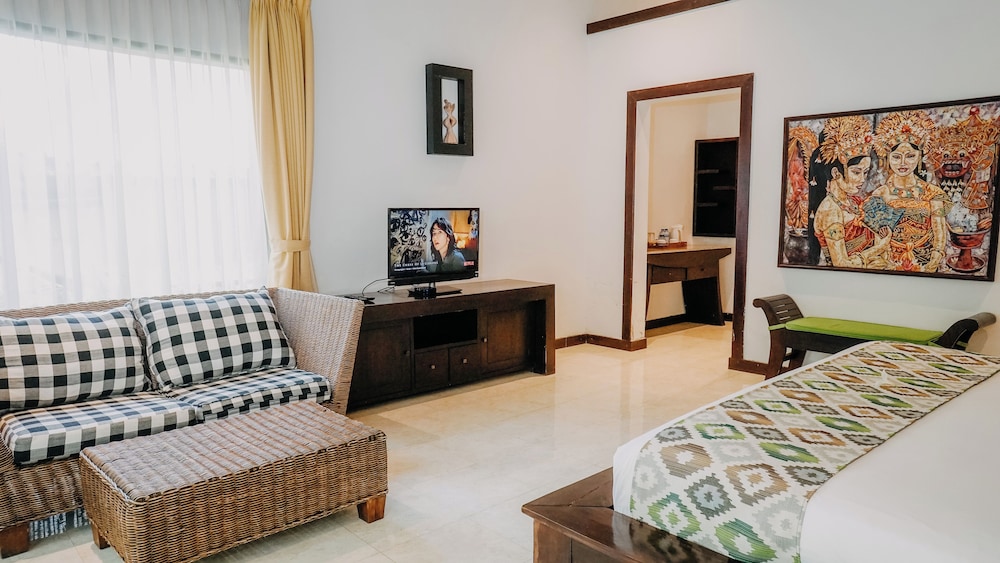This resort is a small boutique resort which blends contemporary, well-appointed rooms with traditional Balinese touches. The rooms are set in clusters surrounding a Mediterranean-inspired patio, featuring lush landscaped gardens. Built in 2007, this air-conditioned resort offers a total of 21 rooms. Guests are welcomed in the lobby, which also offers a hotel safe. Guests may dine at the restaurant or choose to take advantage of room service. Internet access is provided, and for additional fees, guests may also make use of the laundry service and bike hire facility.