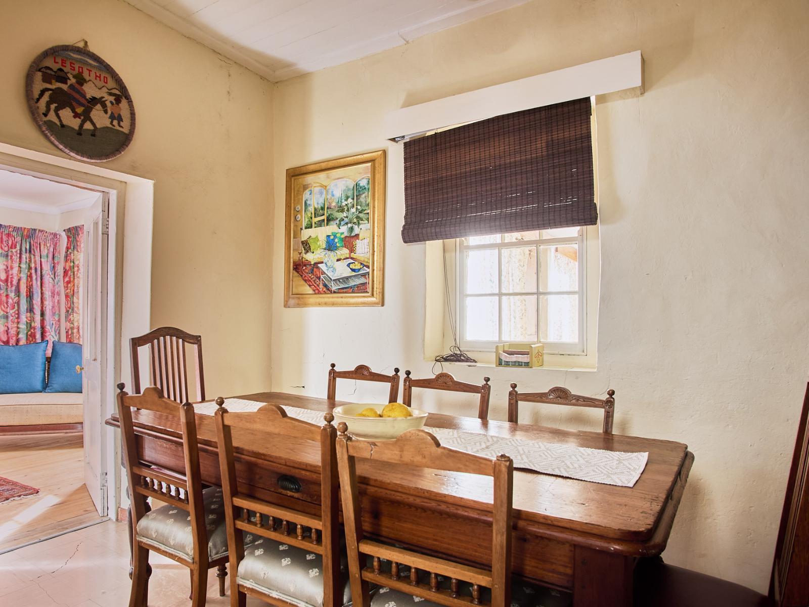 Like visiting great granny's cottage from days of old. Typical Free State Sandstone bricks and a large garden to explore and look over the whole of Clarens.