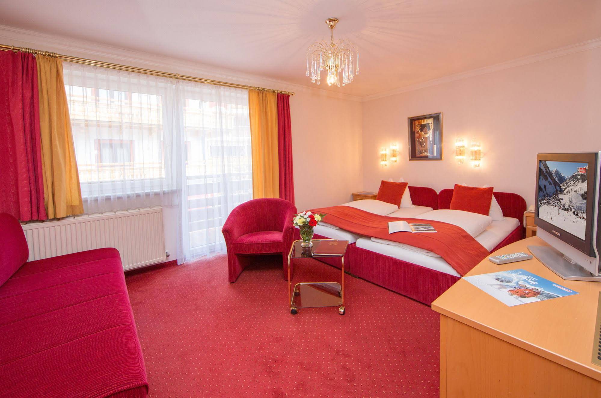 The hotel is located in the very centre of Saalbach, at the heart of the Saalbach-Hinterglemm winter sports region and only 50 m from the Bernkogel ski lift. It is a short walk from the gateway to the Saalbach-Hinterglemm Ski Circus, offering 200 km of perfectly groomed slopes, 55 state-of-the-art cable cars and lifts, 10 km of groomed cross-country ski runs, floodlit slopes and snowboard runs.This very comfortable 100-room ski hotel offers a newly designed spa area, spacious rooms, a big restaurant with panoramic gallery and cosy parlours. Private parking is possible on site and wireless Internet access is available throughout the hotel (charges apply to both). In addition to a lobby area with 24-hour reception and check-out services, a hotel safe and lift access to the upper floors, further facilities available to guests at this air-conditioned establishment include a bar, conference facilities and room and laundry services. A bike hire service is also provided.In addition to a private bathroom with a shower, bathtub and hairdryer, in-room amenities include a direct dial telephone, satellite/cable TV, Internet access and a minibar. Further standard features of accommodation units include a double bed, individually regulated air conditioning and heating and a balcony/terrace.Guests can enjoy a dip in the indoor heated swimming pool with poolside snack bar, warm up in the hot tub, sauna and steam room or take advantage of relaxing massage treatments. Fans of the fairway can head to the nearest golf course, Golfclub Saalbach Europa-Golf-Region, which is approximately 1 km away from the establishment.A continental breakfast is served each morning at the hotel. Lunch and dinner can be taken à la carte or selected from various menu options.