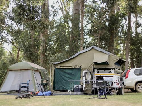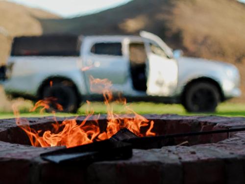 The luxury campsites provide access to a hot tub/splash pool, as well as a boma with a fire pit for braais. The luxury plots come with private bathrooms, electricity, and water points. There are walking and mountain biking trails. Please note that camping is not pet-friendly.