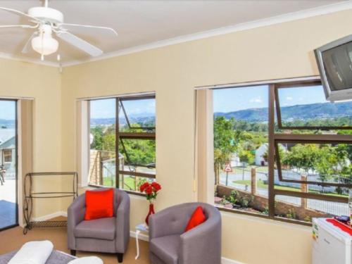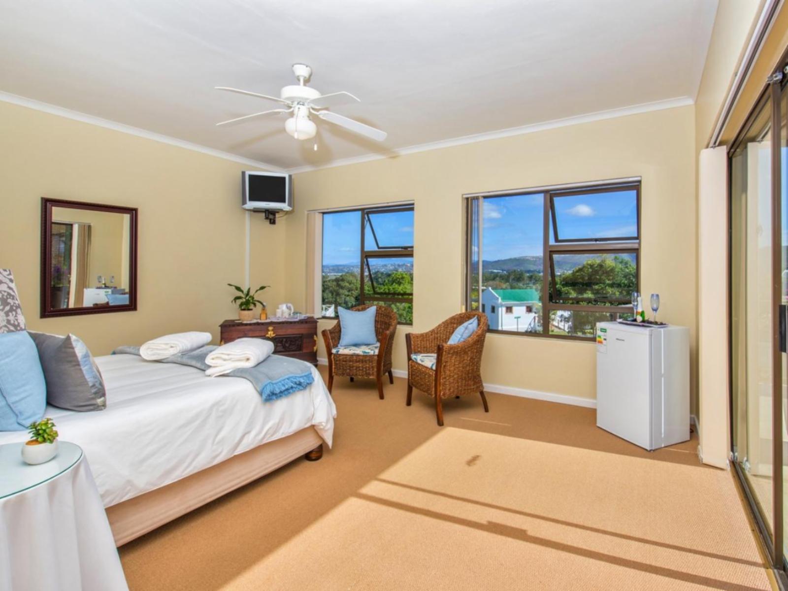 Welcome to Bergsig B&B.At Bersig we have 5 bedrooms, dining room, TV room, patio, All facilities upstairs. Two of the rooms has a queen-sized bed. The other 2 rooms have 2 single beds each and can be converted into a king-sized bed. The fifth room is at the ground floor and is wheel chair friendly. Each room has a TV, a bar fridge, hair dryer, coffee/tea facilities, full bathroom and walk-in dressing room.Attractions in the area include Leisure Isle lagoon, Knysna Heads, Puzula Golf Course, Knysna Golf Course, Simola Golf Course, Waterfront, Knysna Elephant park and boat trips on Lagoon. We o