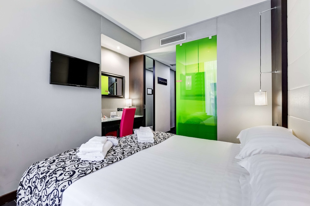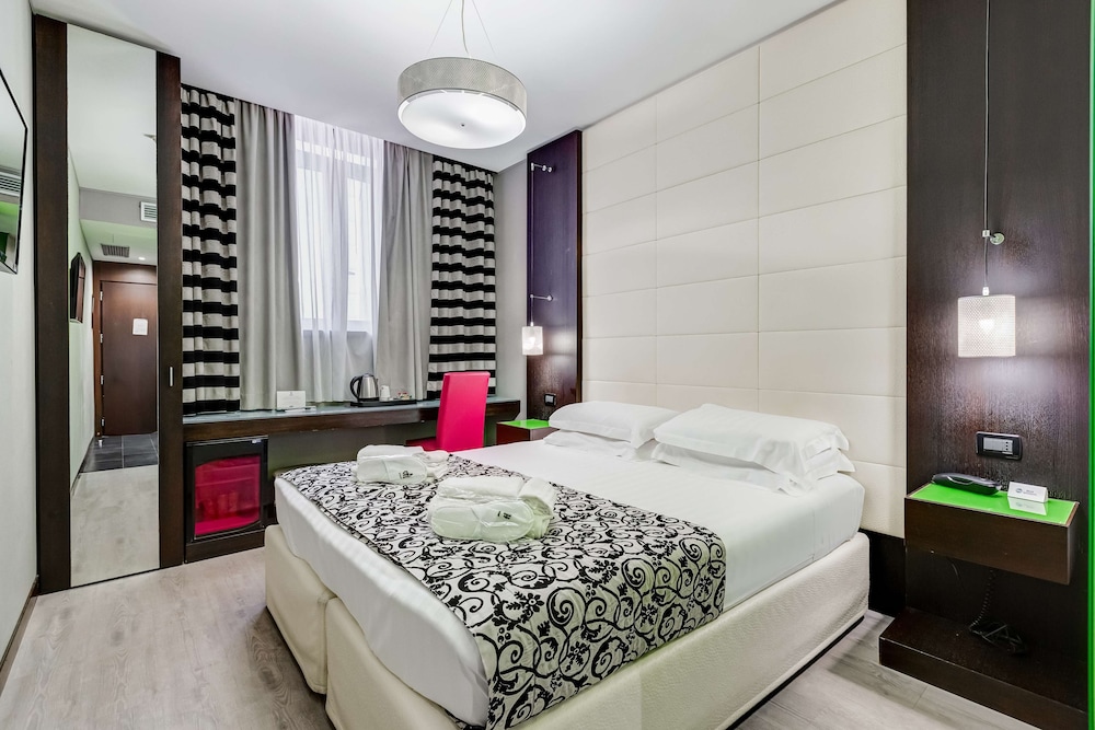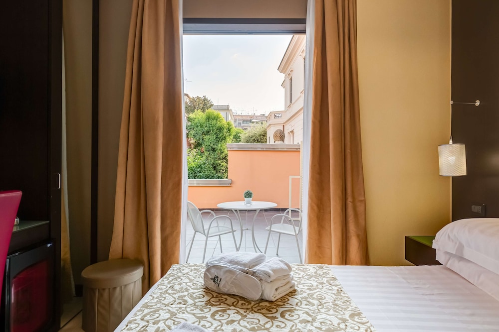 The terrace hot tub free Wi-Fi and nearby shopping and transportation make sweet music at the Best Western Cinemusic Hotel. Decorated with film and music memorabilia the three-story hotel has 35 stylish rooms with free Wi-Fi satellite TV and coffeemakers. After running around the city or getting work done in the business center relax in the rooftop garden or indulge in the hot tub on the terrace. The front desk offers assistance 24/7 and airport shuttle service is available for an additional fee. Set in central Rome the Cinemusic Hotel is less than two blocks west of the Re di Roma metro stop which means a quick 15-minute ride to the Spanish Steps. Popular sites abound nearby including the Basilica St. John Lataran less than one mile northwest. When looking for that perfect travel treasure take a stroll along the Via Appia Nuova two streets away. The hotel lies seven miles from Rome Ciampino Airport and 18 miles east of Leonardo Da Vinci International Airport.