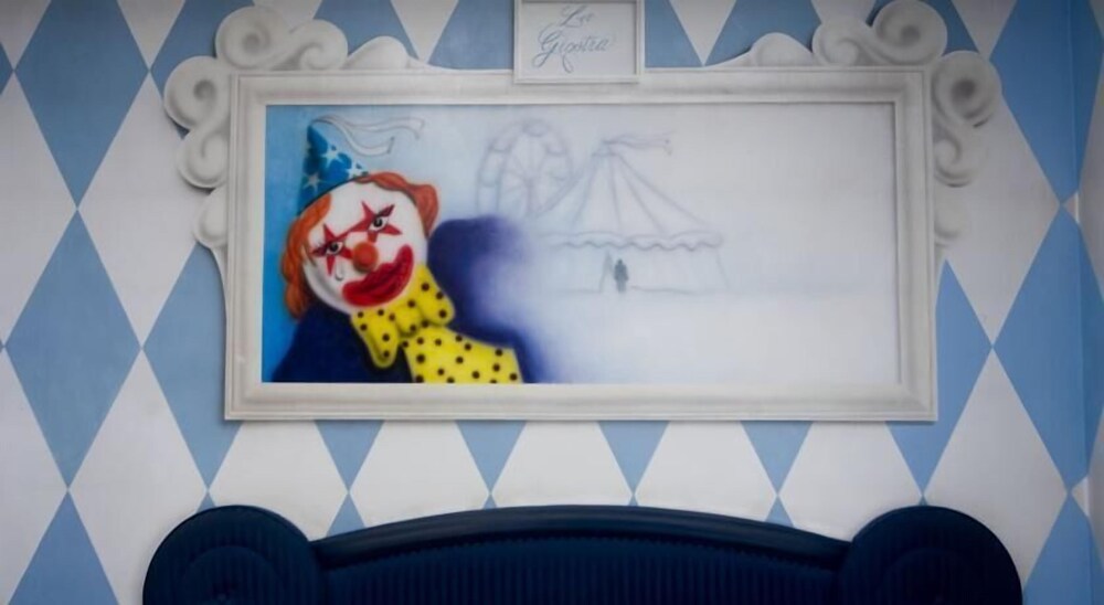 La Gradisca has been restored to an unique style and inspired by the famous Italian film director Federico Fellini. In every room there is a painted picture representing a character or a scene from Fellini’s movies.