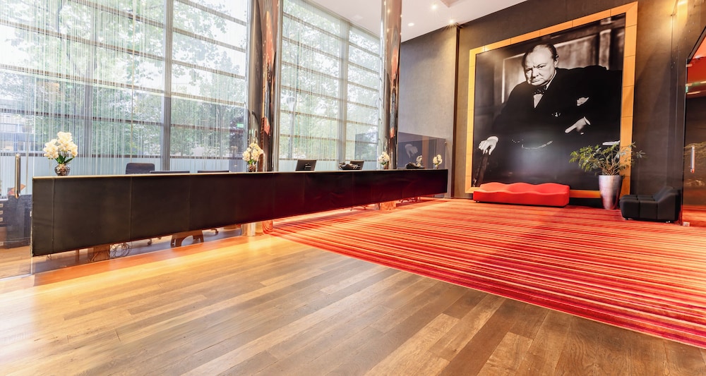 The Grand Canteen is an accessible, contemporary restaurant with high tables where guests can enjoy modern culinary specialties, international classics. The buffet breakfast is served in the Kesslerpark. Guests can also enjoy drinks at the hotel's bar & Lounge The hotel is a modern high rise building with large windows The hotel has a large lobby. The reception is decorated in a remarkable design style. In the lobby behind the reception the daylight from the 7 meter high wall of glass is broken by a vertical chandelier of 1200 glass fibers that are broken at regular intervals, so light falls sideways. There is a large picture of Sir Winston Churchill on the wall next to the reception. The Worldhotel Grand Winston hotel is a top design hotel named after the famous Sir Winston Churchill. It offers spacious and well appointed accomodation to business and leisure travellers. Itis the ideal place to stay when visiting the Royal cities of The Hague or Delft.