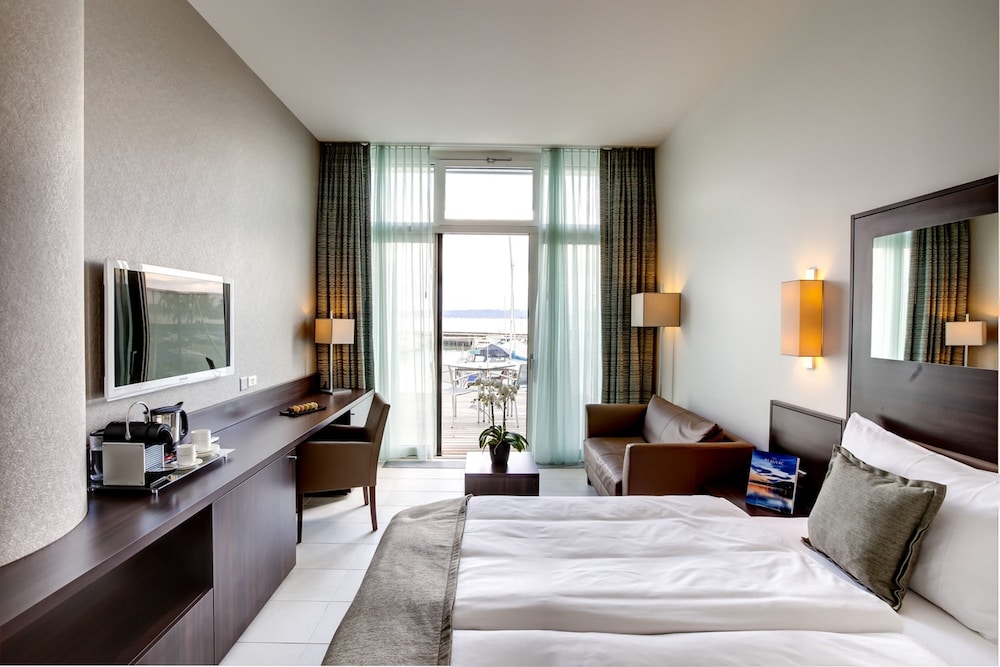 Style and comfort await you at the lakefront Best Western Premier Hotel Beaulac. Located on the prominent harbor of Neuchatel, the hotel provides stunning views of the lake and is just a short walk from the historic city center. The largest hotel in the region, the Best Western Premier Hotel Beaulac offers conference facilities and meeting rooms and is equipped to handle events, from marriages to board meetings. Serving fusion cocktails and refined cuisine, the hotel features a trendy lounge, restaurant and sushi bar, all with outdoor space overlooking the lake. All guests receive free wireless Internet access and the hotel serves a daily breakfast buffet. And, for a great night's sleep all rooms are equipped with Elite brand mattresses to offer a top quality rest. Whether you are traveling on business or leisure, you can be rest assured that the Best Western Premier Hotel Beaulac is an ideal choice for comfort and relaxation.