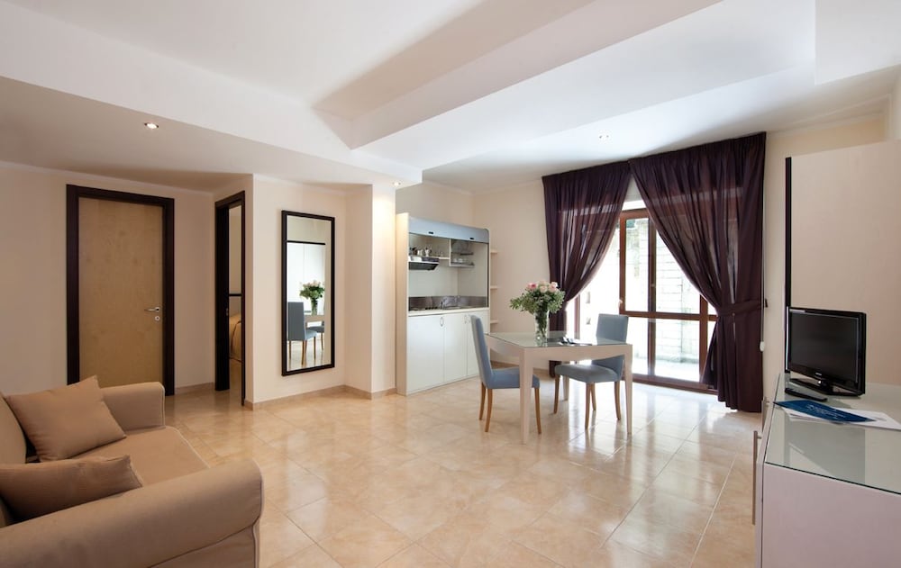 The Best Western Suites & Residence Hotel is a comfortable 4 Star hotel located in a strategic position at Naples doorsteps and close to the main roads and highways. The hotel has 43 spacious and luminous rooms all equipped with high quality comfort. Designed by a team of engineers and architects, the Best Western Suites & Residence Hotel stands out thanks to its innovative design and functional spaces able to meet the needs of the most demanding customers. The Best Western Suites & Residence Hotel is very close to the Mostra d Oltremare, NATO, Citta della Scienza, and San Paolo Stadium. The spacious lobby and common areas are the ideal places for guests to relax after a long working or traveling day. The excellent restaurant and the cozy bar are perfect to organize a wide range of events. Enjoy your stay!