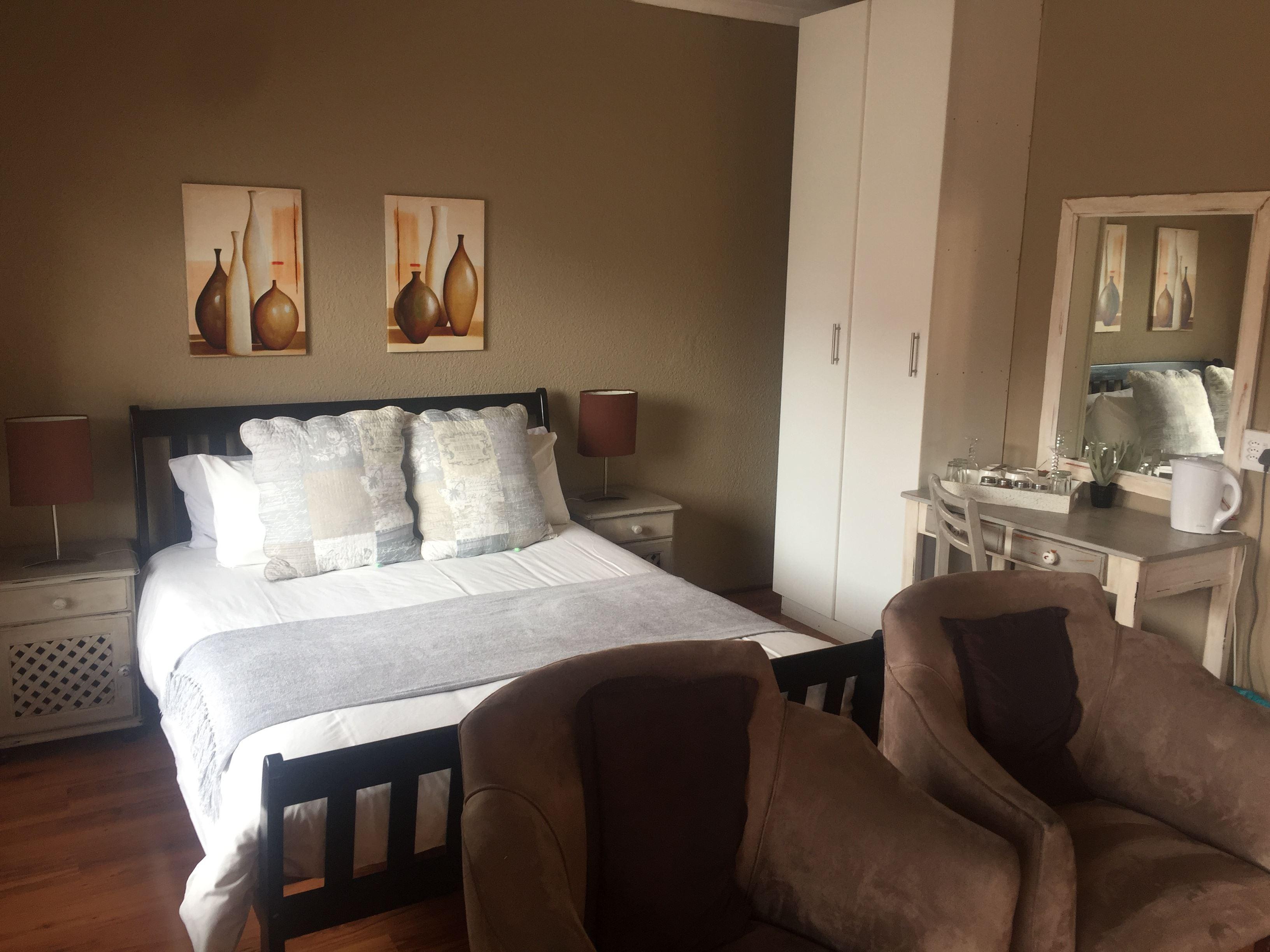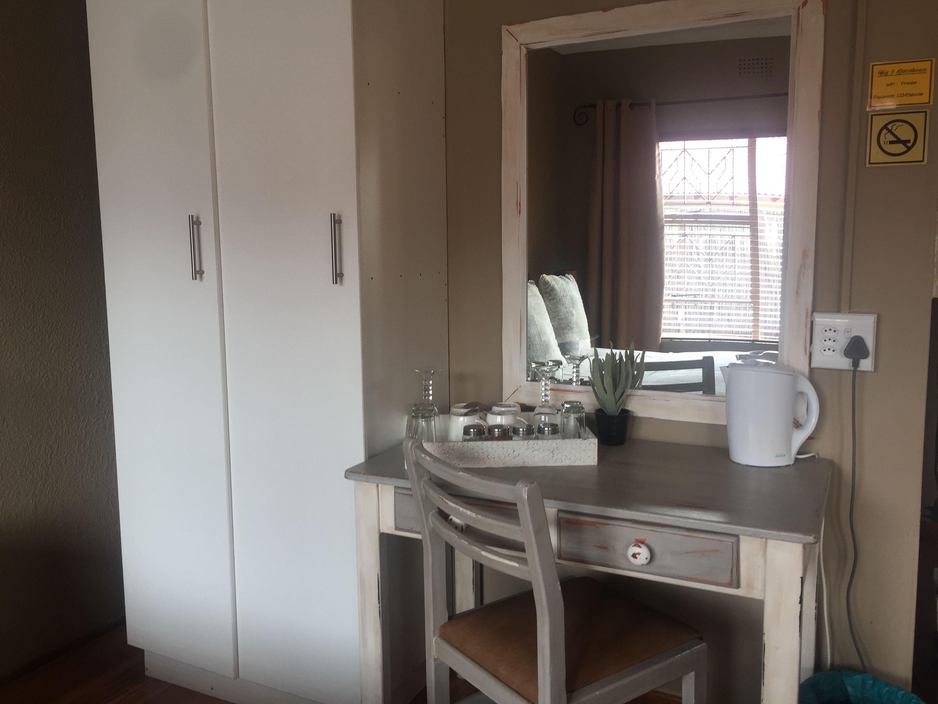 Big 5 Guest House is conveniently situated 8 km from OR Tambo (Johannesburg) International Airport. The Guest House is stunning with very up market finishes and furnishings. The house is in the middle of a very nice suburb but you are minutes away from all the highways and byways to all the major business centers. When you arrive you will be welcomed by your hosts, Anton and Antoinette and youwill be escorted to your room of choice. We vHave a Shuttle service available at R200-00 per trip not exceeding 4 x persons. Accommodation: There are four different room types and all of them are very