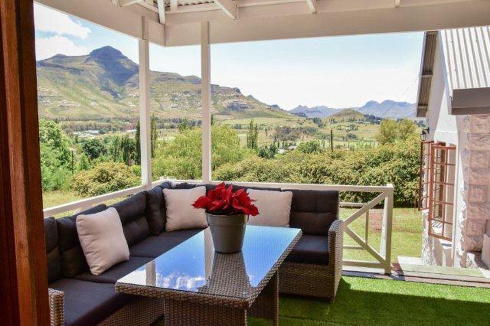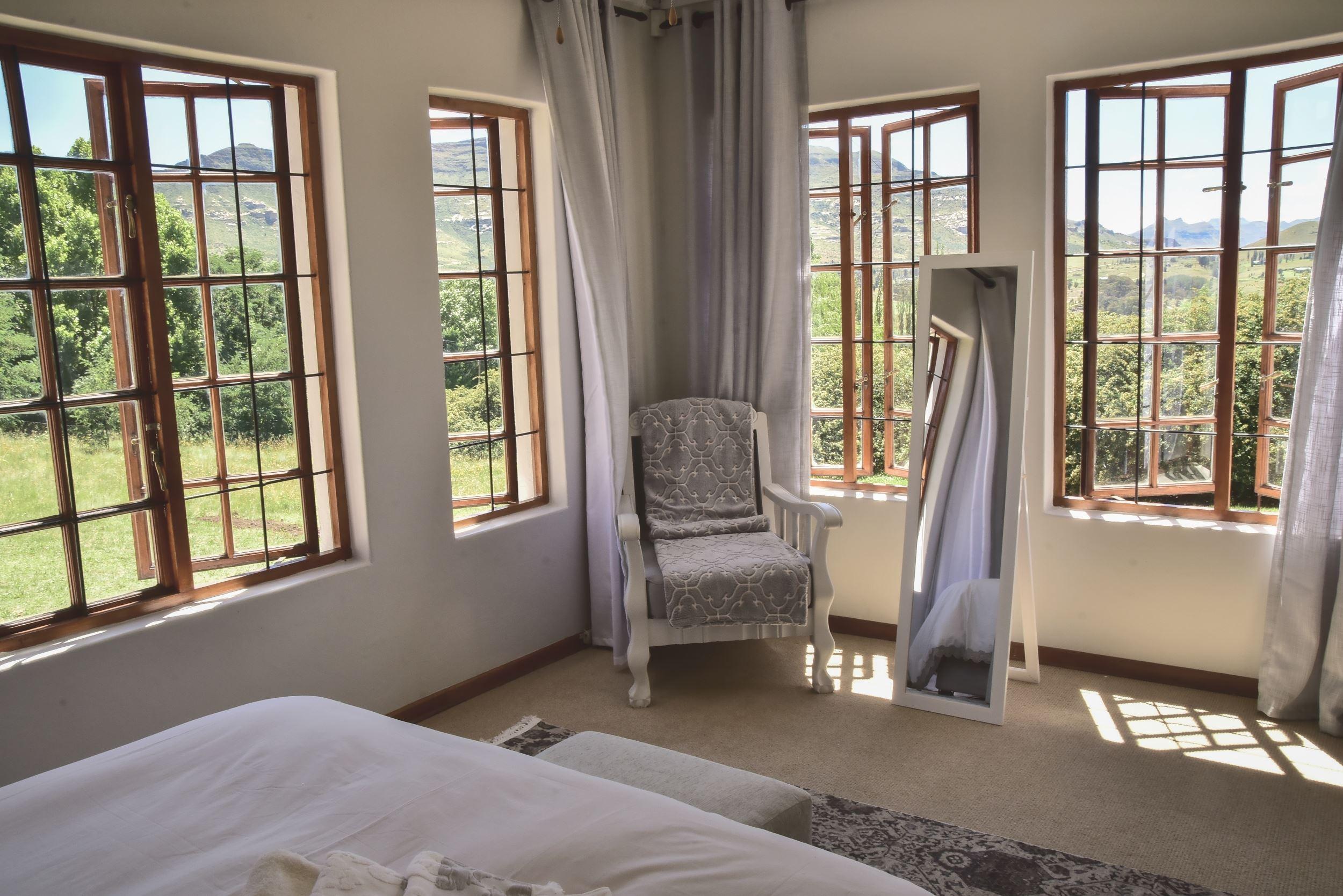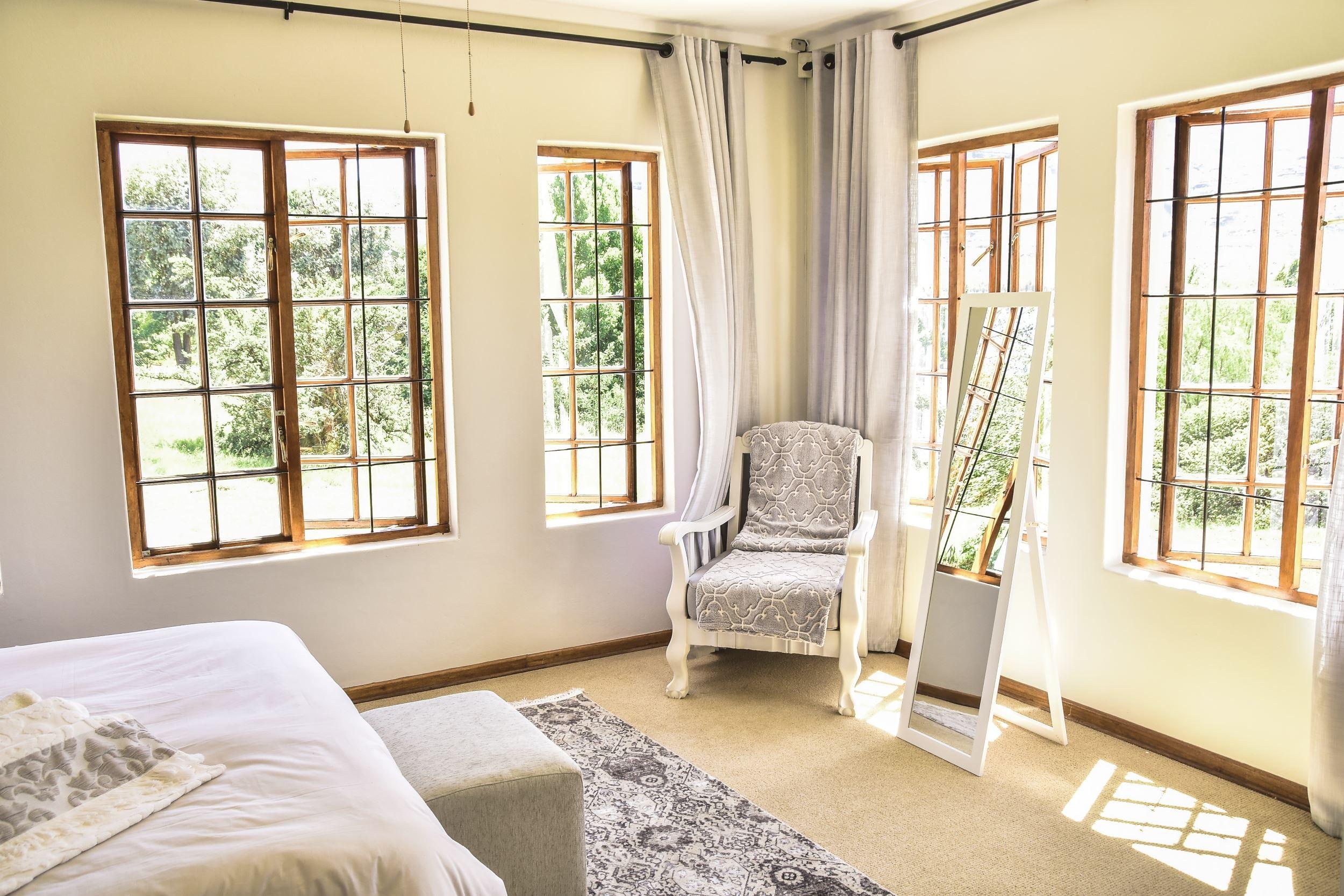 Birch Cottage is a comfortably furnished self-catering house situated in Clarens, with beautiful views of the surrounding mountains. This is the perfect place to get in touch with nature as all the rooms have spectacular views. It is only a short walk from the centre of town. Clarens is situated in the foothills of the Maluti Mountains in very close proximity to the Golden Gate National Park and the Mountain Kingdom of Lesotho. The cottage consists of two double bedrooms (queen size beds) sleeping four guests, a loft area (two single beds) sleeping two guests, two bathrooms of which one is