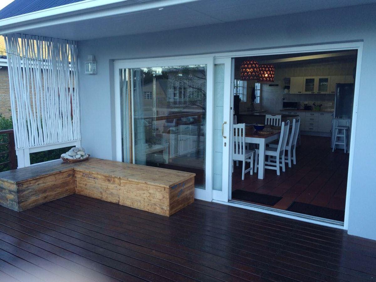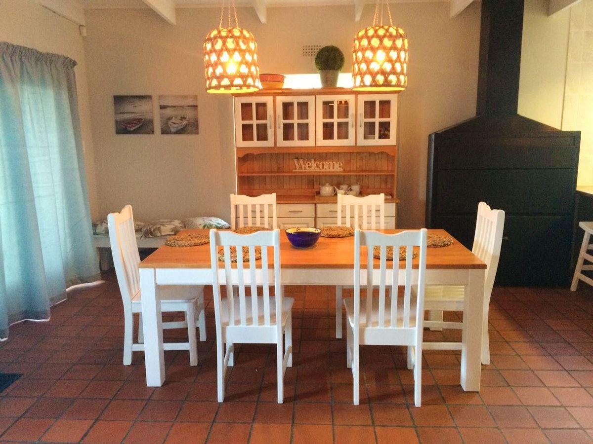 Birdstone Cottage is a fully furnished self-catering house located in Voelklip, Hermanus close to the Voelklip Blue Flag Beaches and the cliff path, and just a short drive into town. Birdstone Cottage can accommodate up to a maximum of 8 adults.The main house sleeps 6 guests and contains 3 bedrooms and 2 bathrooms. The kitchen is fully equipped for self-catering. The dining room and the lounge are open-plan. There is a wooden deck in front of the house, and a braai area in the backyard.There are 2 outside cottages, that each sleep 2 guests. The first cottage contains a