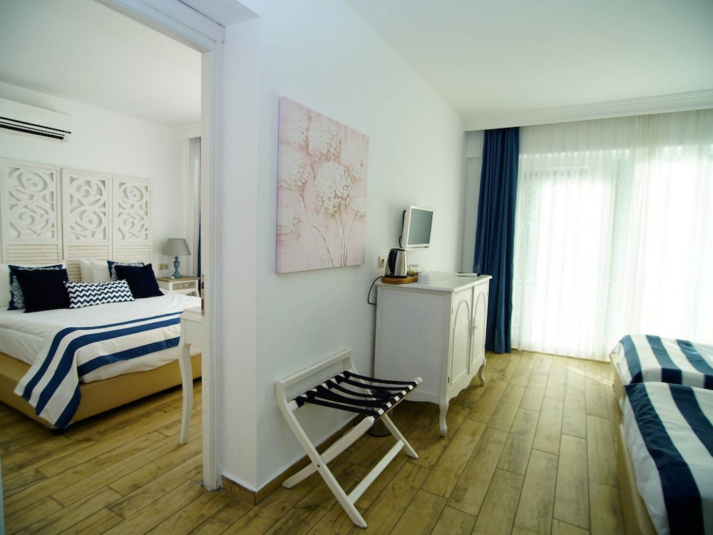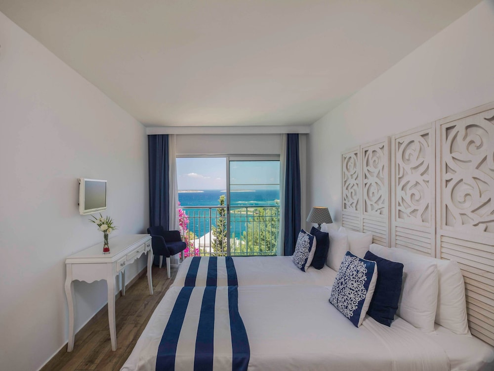 Located in one of the most beautiful bays of the Bodrum peninsula, Zeytinlikahve, the luxurious Club Blue Dreams is set on a lush garden landscape of more than 28 hectares and boasts 700 metres of private beach. Bodrum with its historical sites such as the castle or the Mausoleum of Halikarnassos is only 10 km away.The club's architecture is based on historical and local designs with narrow streets. The elegant rooms have a contemporary style and most of them enjoy splendid sea views. Guests may choose between the main restaurant serving Turkish food and various à la carte restaurants, ranging from kebab over Italian and sea food to Chinese cuisine. Several bars invite to have a drink, enjoying panoramic views. Features include 4 outdoor pools, an aquapark with slides and a children's pool as well as a host of children's activities and a spa. An ideal place for a family holiday.