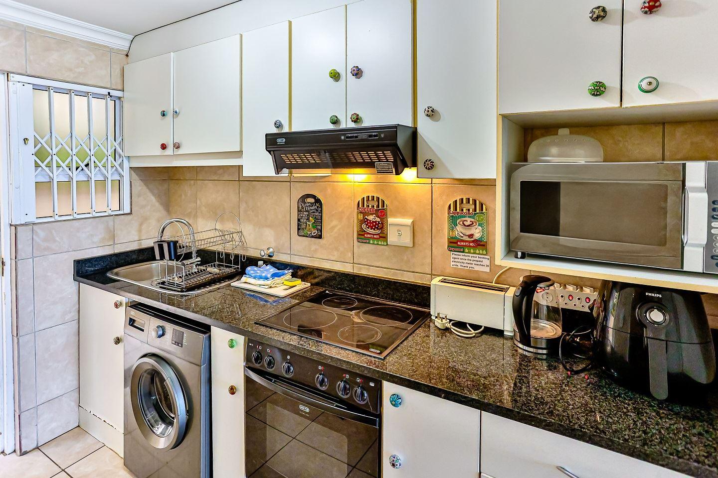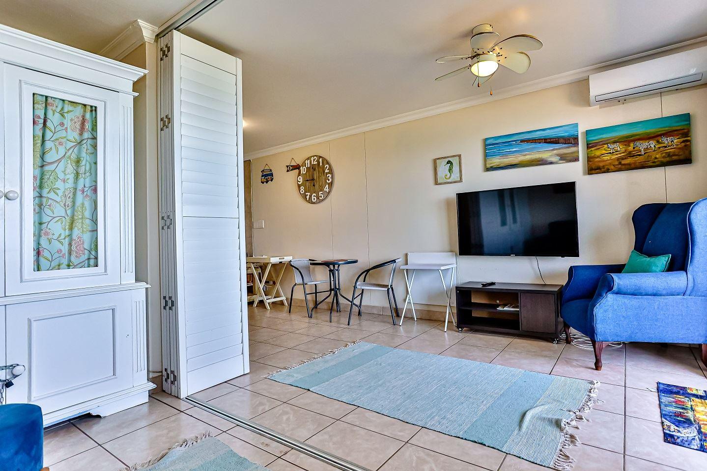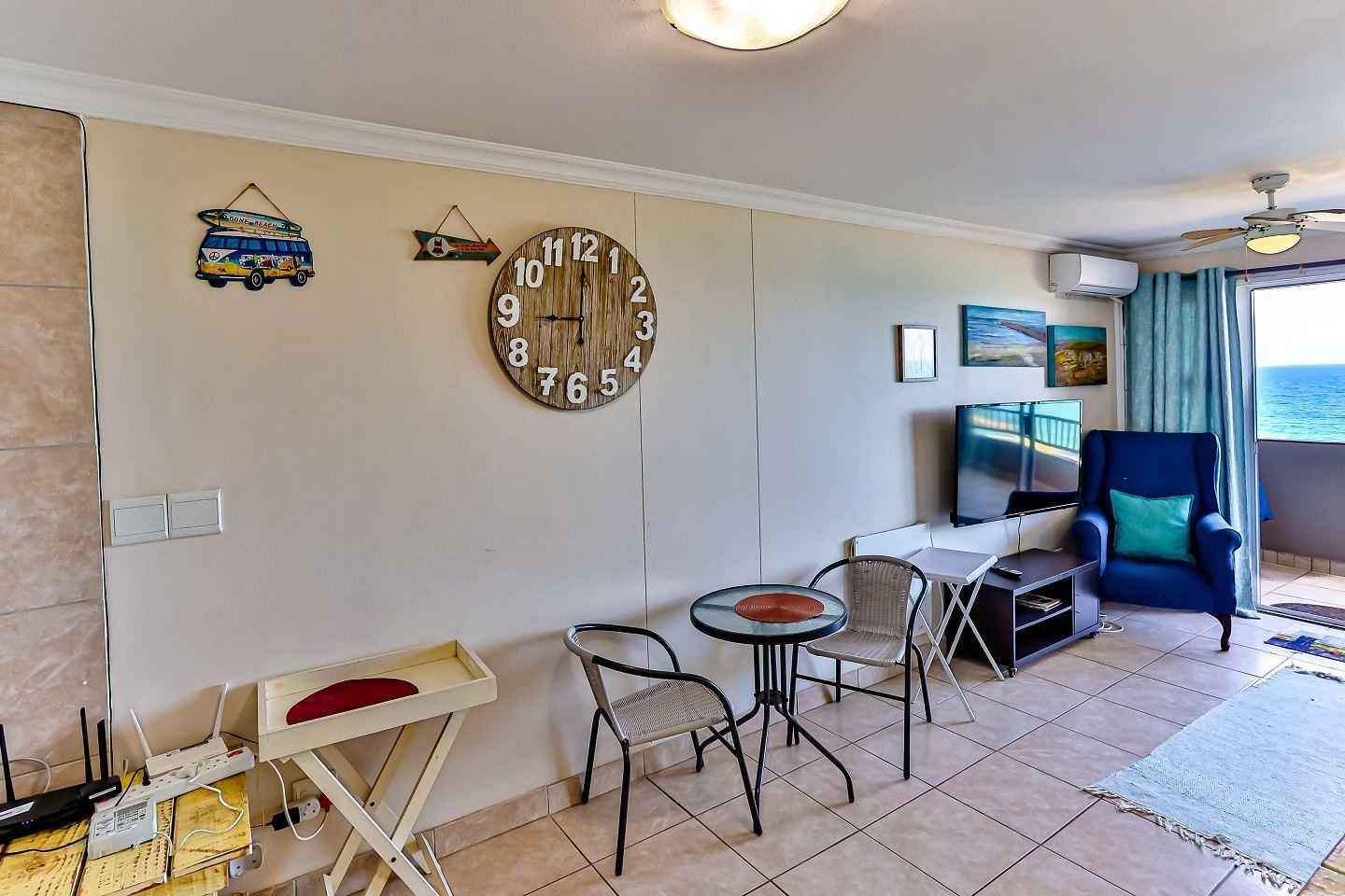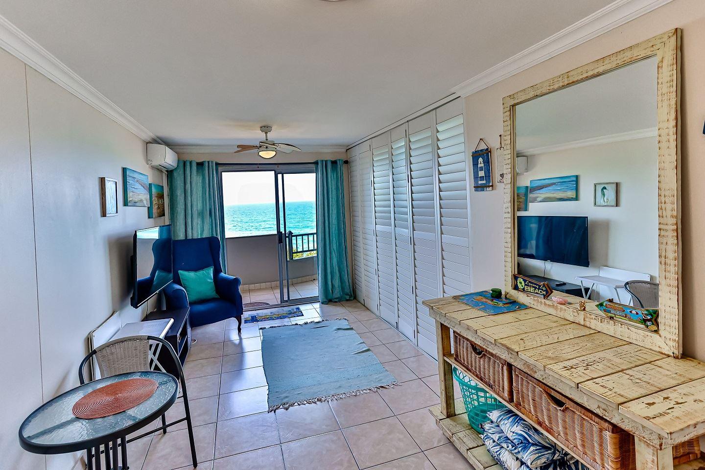 One bedroom flat with double sleeper couch in the lounge with a partition to create privacy for the sleeper couch. . Just across the road from the beach and 10 kilometers south of Ballito. This lovely flat has aircon in lounge, queen bed and sleeper couch for two children (Under 12). Wifi available with Netflix. Air-fryer and safe available. Work desk in lounge.
