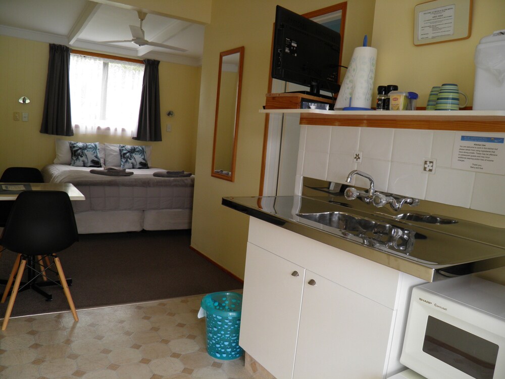 Property Location When you stay at Blue Water Motel in Tairua, you'll be near the beach and convenient to Tairua Beach and Mount Paku. This motel is within the vicinity of Pauanui Beach and Slipper Island.Rooms Make yourself at home in one of the 9 guestrooms, featuring kitchenettes with refrigerators and microwaves. Complimentary wireless Internet access is available to keep you connected.Rec, Spa, Premium Amenities Take advantage of recreation opportunities such as a spa tub, or other amenities including complimentary wireless Internet access and barbecue grills.Business, Other Amenities Free self parking is available onsite.
