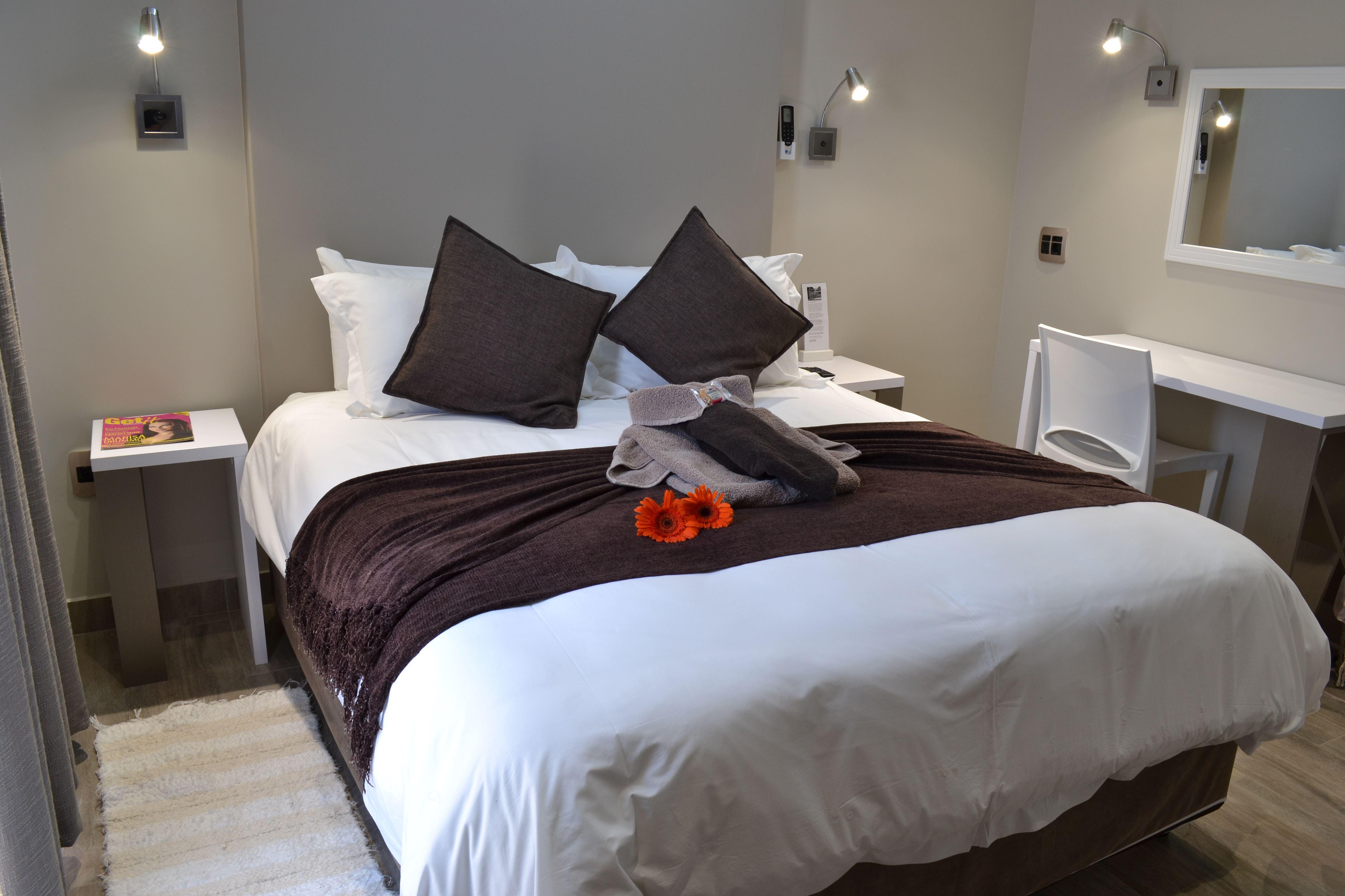 Boa Vida offers a luxury, tranquillity and unrivalled style for the discerning traveller or business executive. Guests may relax in the peaceful garden, at the pool, or enjoy a sundowner on the patio or in the pub. Boa Vida is located within easy access of Mimosa Mall, MediClinic, University, Loch Logan Waterfront and sports grounds. The luxurious guest rooms are each unique in appearance and exude comfort, with safe parking and 24-hour security also provided. Our facilities include luxurious air-conditioned en-suite rooms with tea and coffee-making facilities, LCD flat screen TV w