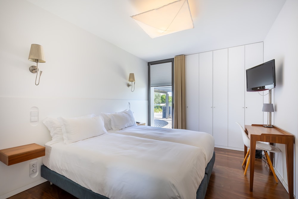 The Bom Sucesso Resort enjoys an excellent location near the beautifully preserved mediaeval town of Óbidos and very close to the white sandy banks of the country's largest lagoon. Access to public transport is around 10 km away, and the bus and train stations are some 25 km away. The beach is approximately 6 km from the resort. It is less than 50 minutes from Portela International Airport of Lisbon (about 85 km).Developed as a model of excellence, with contemporary architecture as the cornerstone of its concept. A group of highly qualified architects, both Portuguese and foreign, developed an innovative concept: contemporary architecture blended into the landscape. Built in 2008, this air-conditioned, family-friendly resort welcomes guests in a lobby with 24-hour reception and check-out service and a hotel safe. Younger guests can let off steam in the children's playground and kids' club, whilst the café and restaurant provide dining options. Guests may also take advantage of the WLAN Internet access and laundry service. Those arriving by car may leave their vehicle in the car park or garage, and bicycle hire is available on site.The resort offers design townhouses with 1, 2 or 3 comfortable bedrooms, a cosy living room with fireplace, fully equipped kitchen and a relaxing terrace overlooking the condominium's swimming pool and garden. Each accommodation unit is en suite and equipped a shower/bathtub, hairdryer, double bed, direct dial telephone, satellite/cable TV, free wireless Internet access and a safe. The kitchens are fitted with a fridge, cooker, microwave and tea and coffee making facilities. An ironing set is also provided, and all units feature air conditioning and heating as standard.