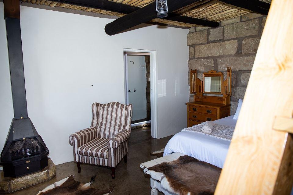 It is a self-catering lodge that can accommodate up to 18 people. There are four units that sleep between four to five people each. Each comfortable unit has two bedrooms (one downstairs, one upstairs) and a bathroom. The downstairs bedroom has a queen-size bed, fireplace, chairs, and an en-suite bathroom (basin, shower and toilet). The stairs leading from the downstairs bedroom to the upstairs bedroom are fairly steep but have a sturdy handrail, and this should be taken into consideration when booking for families with young children and frail/elderly guests. The upstairs bedrooms have two or three 3/4 beds (depending on the unit). Linen and towels are provided. The shared living areas include the kitchen, braai areas, bar, lounge and verandas. The shared living areas and units are cleaned daily. Wood is provided for the fireplaces and braai areas.