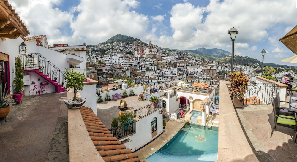 This hotel enjoys an excellent location at the heart of the beautiful city of Taxco, near to the Vicente Guerrero park. The nearest town to visit is Cuernavaca, which is around an hour by car, while Acapulco is approximately 3 hours' drive. Guests can visit various other places close to the hotel, such as the Santa Prisca, and San Sebastian Cathedral and Guillermo Spratling Museum, both of which are 10 minutes' drive, the street market for silver goods (on Saturdays), which is just 200 metres away Silver Sabatino Tianguis, and the cable car, which is a 15-minute drive.This family-friendly city hotel is designed in a contemporary style and is an excellent place to enjoy a peaceful stay in comfort and with a touch of elegance. There are 18 guest rooms in total, and facilities include 24-hour reception and check-out services, a hotel safe and a laundry service (fees apply). There is a café, a bar and a restaurant and guests will appreciate the room service and wireless Internet access. Those arriving by car may leave their vehicles in the hotel car park.The clean and comfortable rooms are fully equipped for a quiet and relaxing stay. All rooms come with a private bathroom with a shower and a hairdryer, and offer a king-size or double bed. The rooms also come equipped with satellite TV, Internet access, a radio, safe, fridge, microwave, ironing set and tea and coffee making facilities as standard. There is also a balcony from where guests can enjoy the spectacular views.There is a heated outdoor swimming pool at the hotel. Fitness enthusiasts may enjoy a workout in the gym, and guests can treat themselves to a soothing massage or spa treatment (fees apply for both), or relax in the steam room (fees apply) or hot tub.Breakfast is served each morning at the hotel, and lunch and dinner can be enjoyed à la carte.