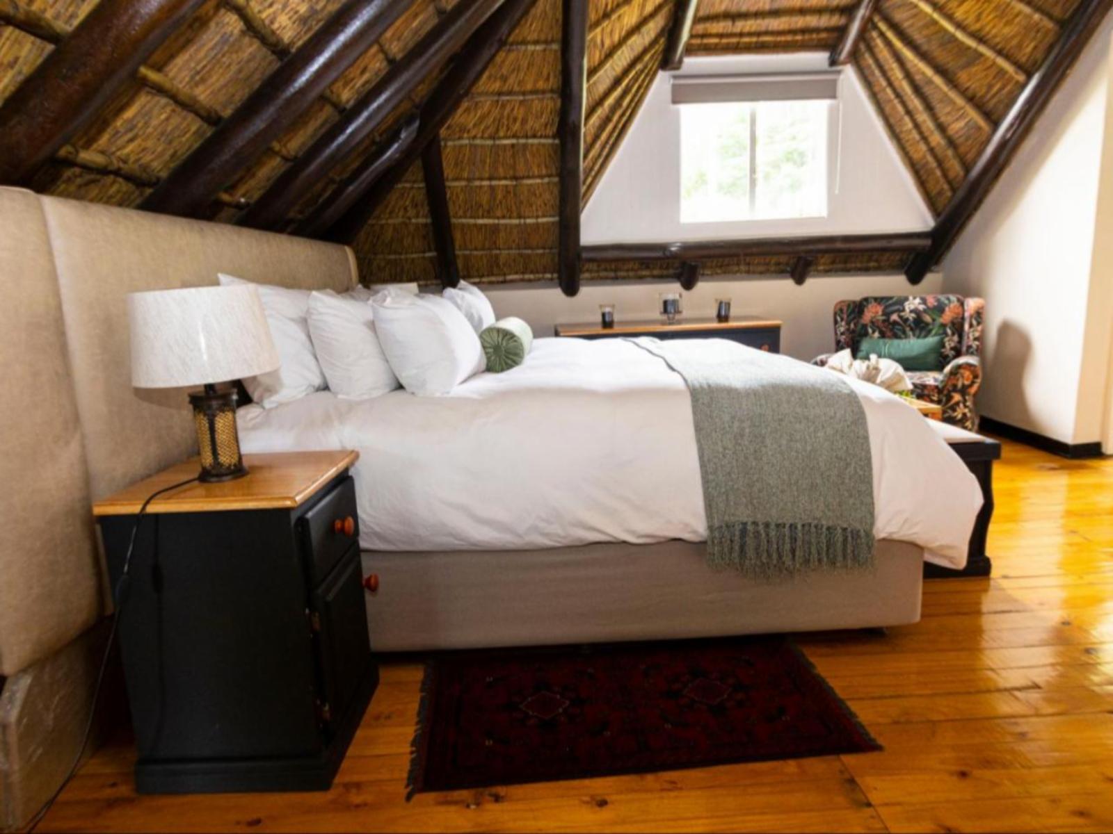 Overlooking the valley and surrounded by breathtakingly beautiful landscapes, this special thatched accommodation is in the heart of a beautifully maintained and expansive garden that features many private enclaves for you to escape with a book and a cup of coffee. You can spend time in the splash pool, and braai or cook with family and friends.