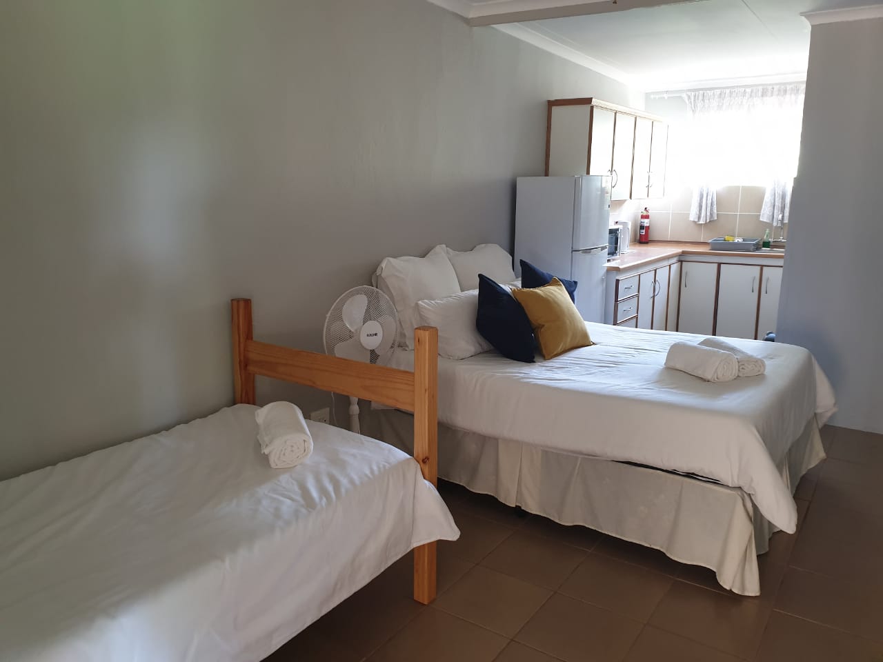 Bundu River Lodge is a self-catering holiday destination situated approximately 16 kilometers from Ventersburg, just off the main N1 highway. We offer a quiet tranquil natural environment for you to relax after a long day on the road, or just to escape the busy busing city center for a weekend away.Accommodation is provided in self-catering rooms, standard rooms, free-standing rondavels, and camping. The self-catering rooms are well-equipped and each contain a microwave, a fridge, kettle and crockery. The standard rooms are very basic, and each contain a double bed or single beds,