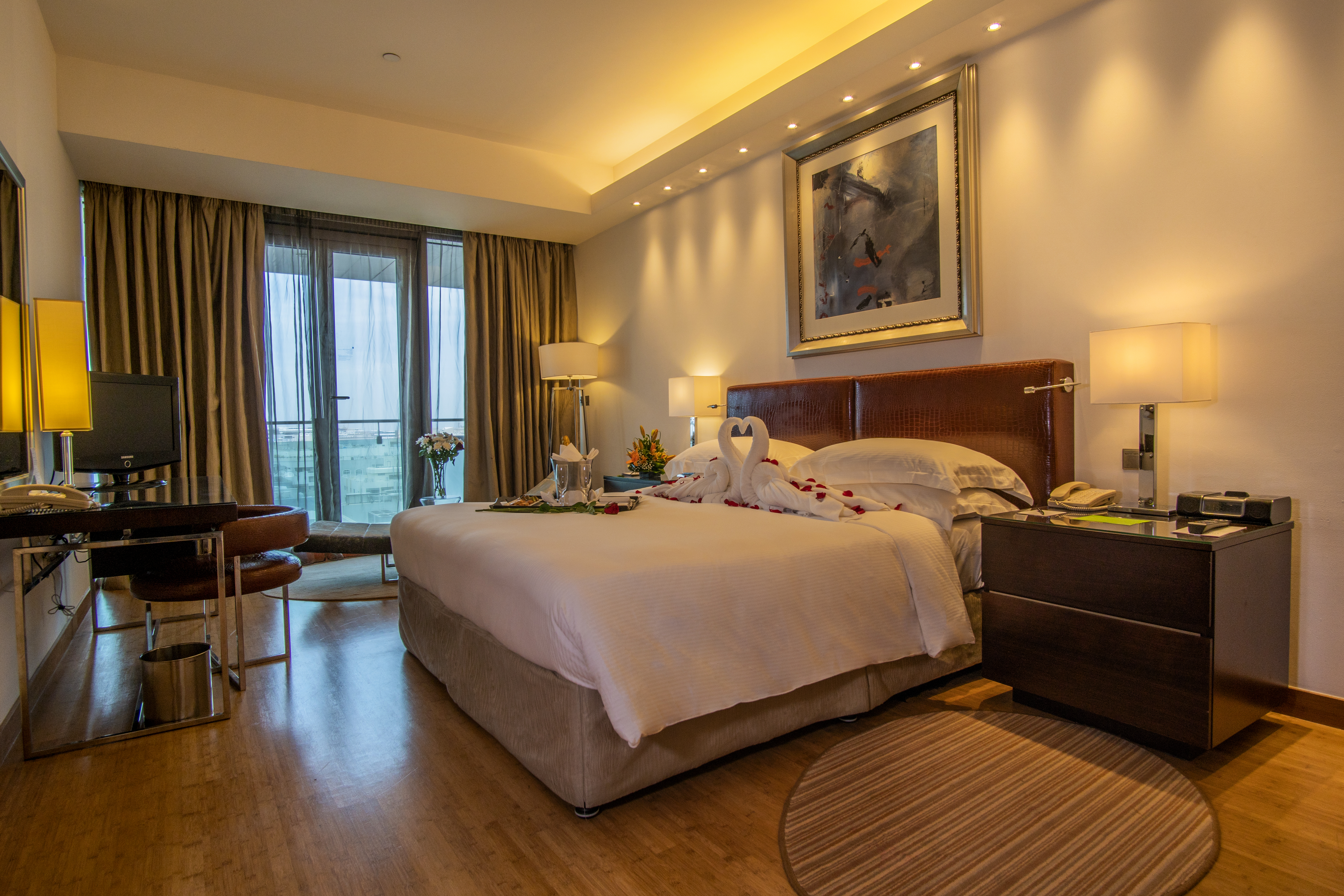 Conveniently located on the Trade Centre Road, in front of Khalid Bin Al Waleed metro station with an easy access via BurJuman Mall, BurJuman Arjaan by Rotana - Dubai is directly connected to the prestigious BurJuman Centre which is home to a myriad of the world's most exclusive brands. The property is just 2 km away from the Dubai World Trade Centre, the Convention Centre and 10 km drive from the Dubai International Airport. BurJuman Arjaan by Rotana offers the distinctive traveller 80 Classic one bedroom suites, 48 Deluxe one bedroom suites.At BurJuman Arjaan by Rotana guests can savour the world’s most famous flavours from Asia, Europe and the Middle East at The Gallery-all day dining restaurant. The Gallery offers guests an intimate dining experience in a casual elegant setting with selections of international cuisine from their daily breakfast, lunch buffets or à la carte menu.Guests can also enjoy meals in the comfort of their rooms with 24-hour in-room dining.The fitness centre gives you unlimited access to latest cardio and weight-training equipment, more than 125 exercise machines and lounge facilities with sauna and complimentary beverages. The outdoor temperature controlled swimming pool is an oasis of relaxation with beautiful views of the city skyline.