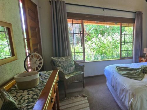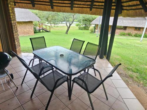 The terrace offers outdoor seating, BBQ/Braai facilities, with peaceful garden views, ideal for al fresco dining.