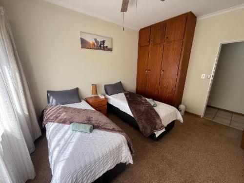 Experience the tranquillity of Mokopane at Bushveld Inn Guest House. We offer beautiful accommodations with all the amenities you need for a relaxing stay. Our guesthouse is the perfect retreat for both leisure and business travellers.We offer accommodation in both two-sleeper rooms and a two-bedroom flat. Our two-sleeper rooms are fitted with a king-size bed or twin beds upon request. The two-bedroom flat includes a bedroom with a queen bed and a second bedroom with a single bed. The bathrooms are fitted with a toilet, a wash basin, and either a shower or a shower-over-bath.