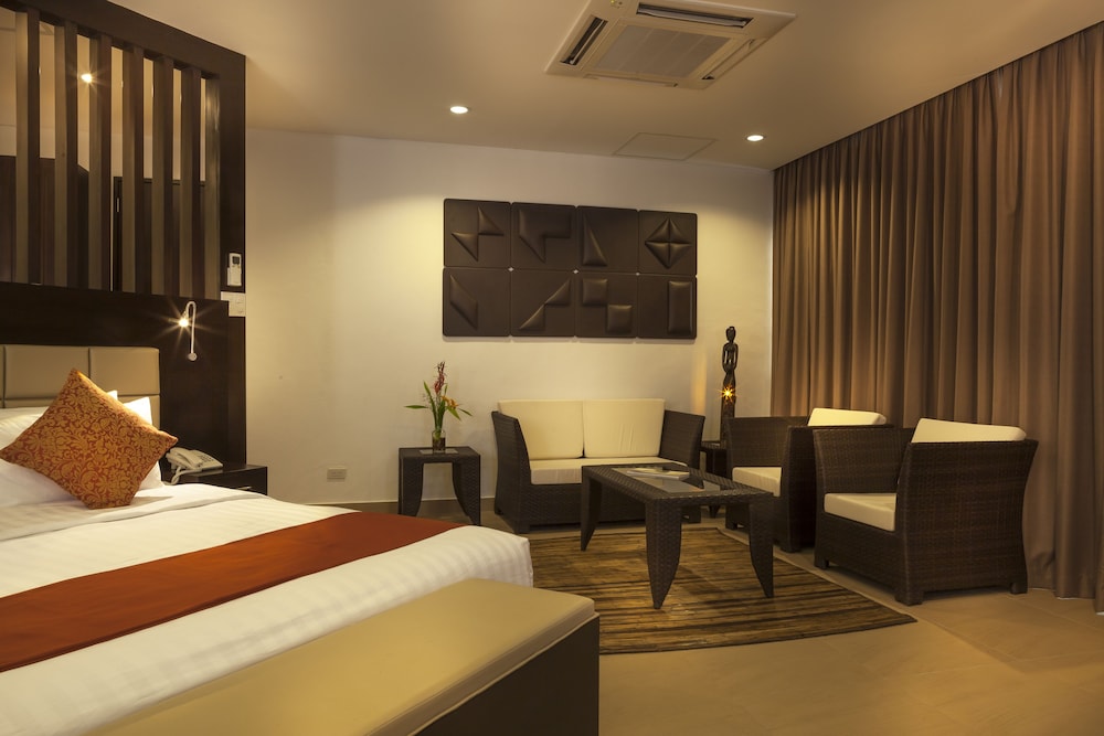 When you stay at Busuanga Bay Lodge in Busuanga, you'll be on the beach and convenient to Okikawa Maru Shipwreck and Concepcion Pier. This 5-star resort is within the vicinity of Bintuan Mangrove Park and Huma Island Beach.Rooms Make yourself at home in one of the 41 air-conditioned rooms featuring refrigerators and LCD televisions. Rooms have private balconies. Complimentary wireless Internet access keeps you connected, and cable programming is available for your entertainment. Private bathrooms with showers feature complimentary toiletries and hair dryers.Amenities Don't miss out on recreational opportunities including an outdoor pool and a fitness center. Additional amenities at this resort include complimentary wireless Internet access, concierge services, and babysitting/childcare (surcharge).Dining Enjoy a satisfying meal at a restaurant serving guests of Busuanga Bay Lodge. Quench your thirst with your favorite drink at a bar/lounge. Breakfast is available daily for a fee.Business, Other Amenities A roundtrip airport shuttle is provided for a surcharge (available on request).