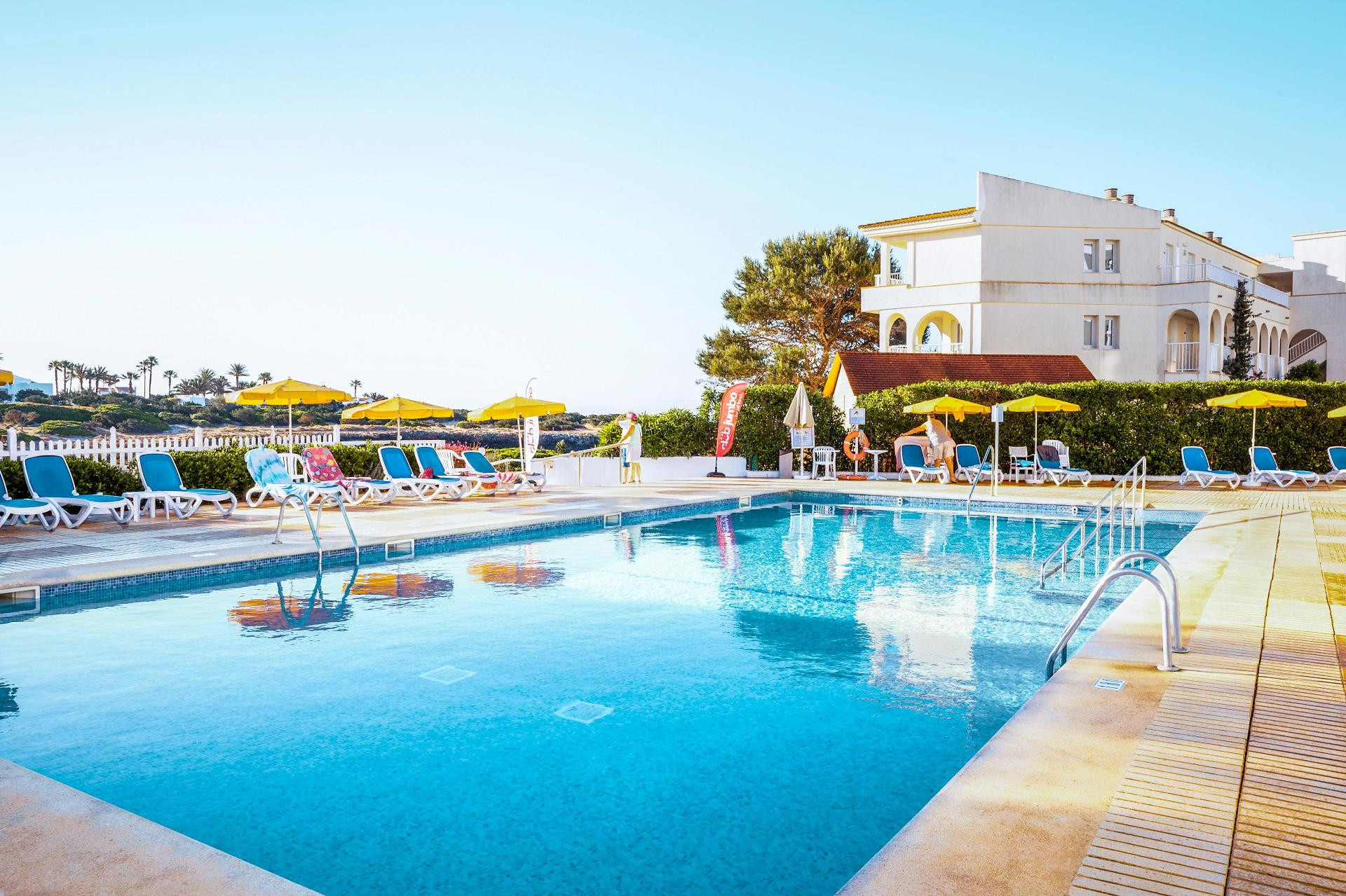HOTEL: This beach hotel, is surrounded by a garden, has 6 floors and 188 rooms. The establishment boasts a lobby with a reception, WiFi, 2 lifts, a bar, a television room and a restaurant. The establishment also offers a laundry service, a car park, an indoor car park and a mini-club. SITUATION: It is by the beach, Cap d'Artrutx near the establishment, you will find 5 minutes away from the establishment clients have the harbour, the city centre, Where you can find shops, bars and restaurants. Ciutadella de Menorca the establishment is 11 kilometres away from in front of the establishment, clients have public transport services. ROOM: The inviting rooms, fully-equipped, a bathroom, a direct line telephone, a satellite or cable television, an air-conditioning system and central heating. They also have a safe and a balcony or terrace. FACILITIES: Outdoors, clients can enjoy 2 swimming pools, 2 children's swimming pools, a snack bar, a sunbathing terrace, deck chairs and parasols. Guests can also enjoy tennis, darts and archery. At an additional cost, you can playing billiards, go cycling and go mountain-biking. At the beach, you can find deck chairs and parasols. The establishment also offers an entertainment programme (seasonal), for children, an activities programme for adults. MEALS: Regarding the food and beverage offering, the establishment offers a buffet restaurant. PAYMENT METHODS: Customers can pay by Visa and Mastercard.