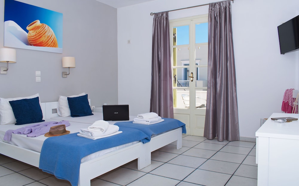 Camara hotel is situated in Agios Pokopios. It's only 350 m away from the beach of Agios Prokopios, which is one of the awarded beaches of the island. It's just 5 km away from Chora, the centre of Naxos./Camara hotel is a perfect choice for those who want to be near the magnificent white sand beach and of course near by all excursions as the bus stop is quite near the hotel (only 30 m).