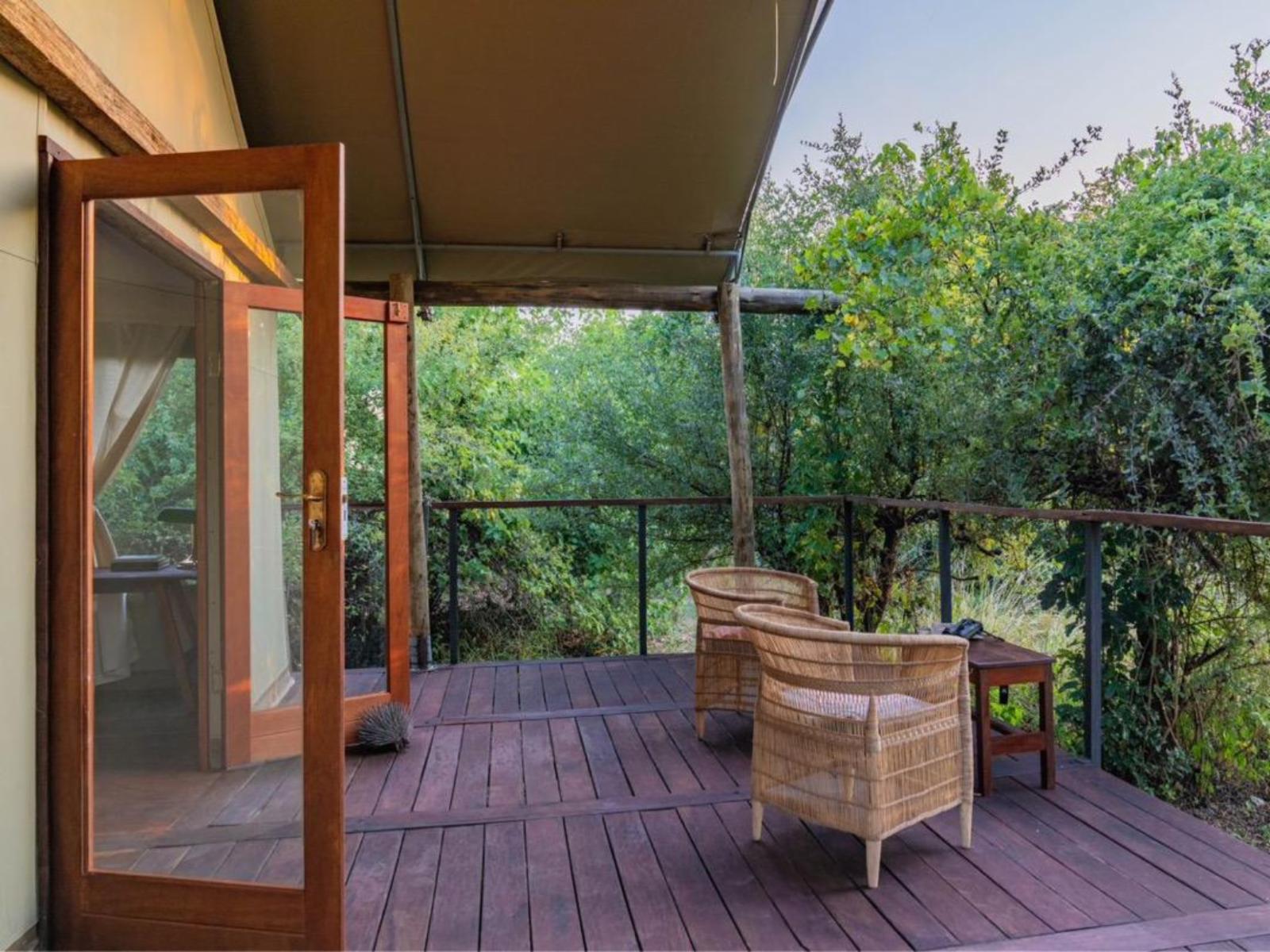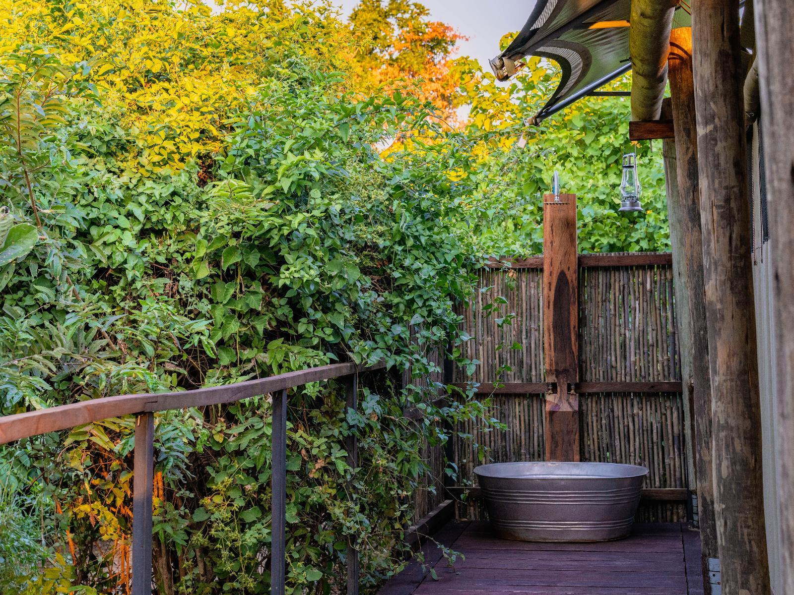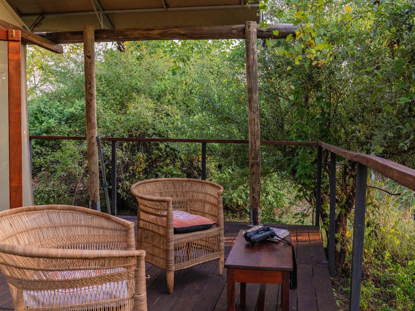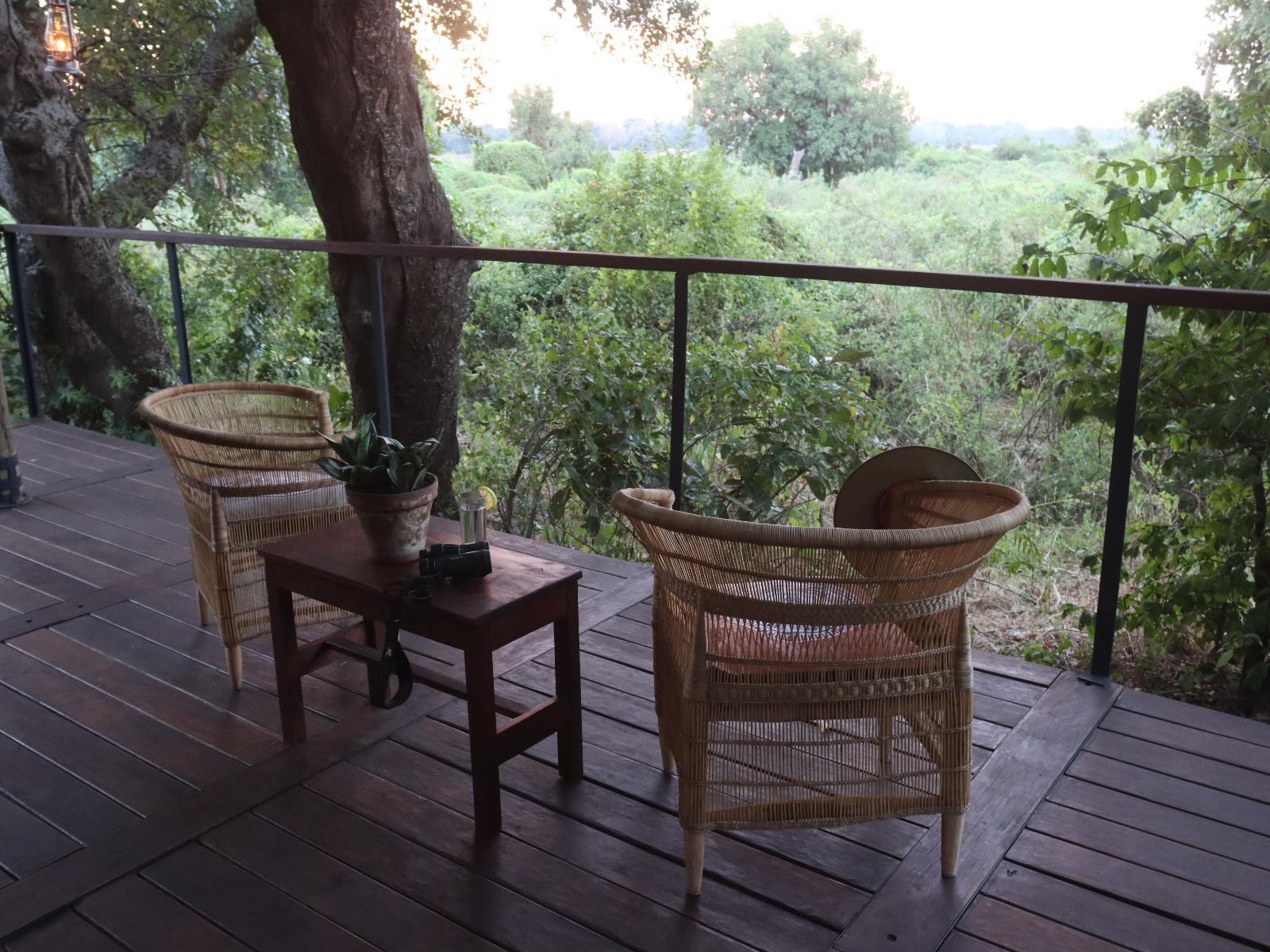 Each of our six luxury tented units accommodates 2 people and has an en-suite bathroom with an indoor shower, twin basins, a toilet, and access to a private outdoor shower. In addition, each tent is furnished with a king-size bed that can be converted to twin beds, sustainably sourced hardwood decor, a portable fan, and a spacious, private deck/terrace overlooking the flood plains out to the Luangwa River.
