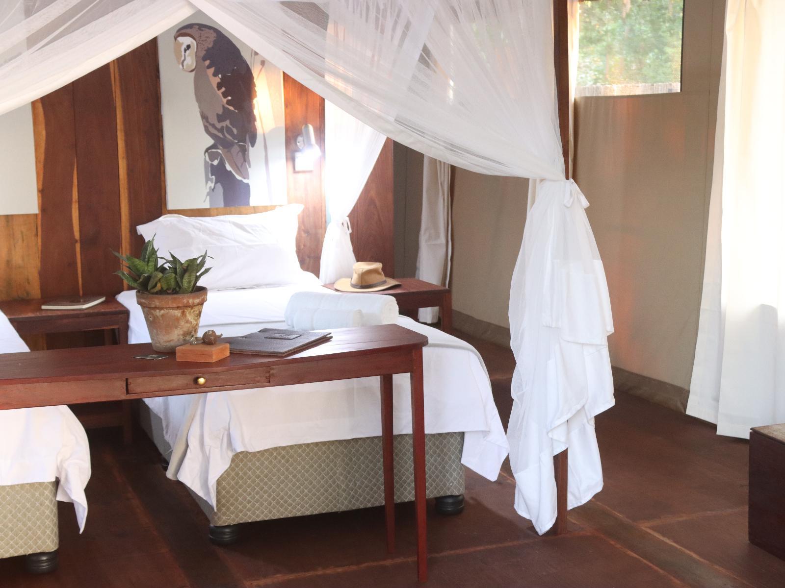 Alive with the sights and sounds of nature, Camp Sabali is inspired by the local surroundings and the many magnificent bird species that call the camp home. The décor reflects the different plumage of six of the most common birds found on the island, including our rescued barn owls who were raised and released here.