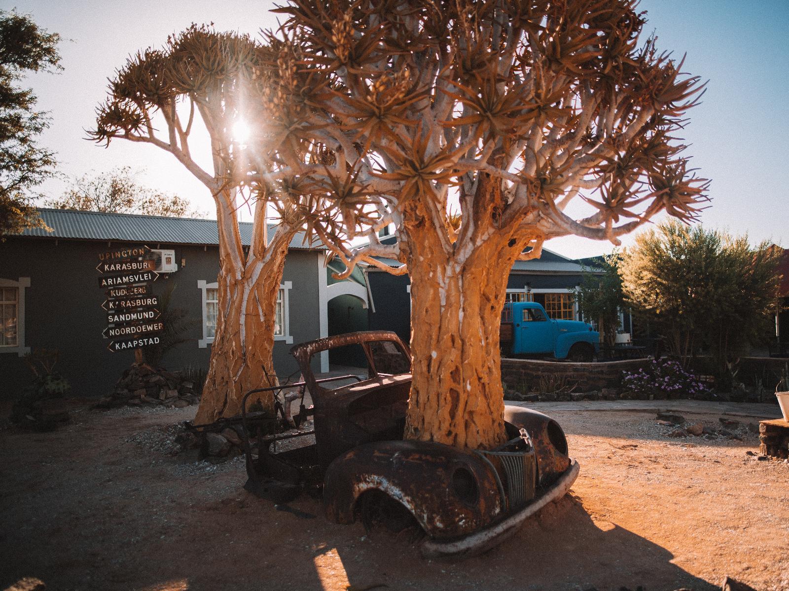 Fill up on smiles at this extraordinary and out-of-the-ordinary lodge. Resembling a roadhouse of old with a large red roof, the lodge is a veritable treasure-house and a 'must-do' stop when visiting the canyon. The outside area hints of the wonderland interior with its rusty old Chevys and Fords from a bygone era, adorned with corky quiver trees and desert flora. Park your vehicle and step inside. As if you have entered an Aladdin's cave, the large doors open onto an International truck serving as the reception desk, a 'pompstasie' (filling station) bar and an assortment of classic vehicles an