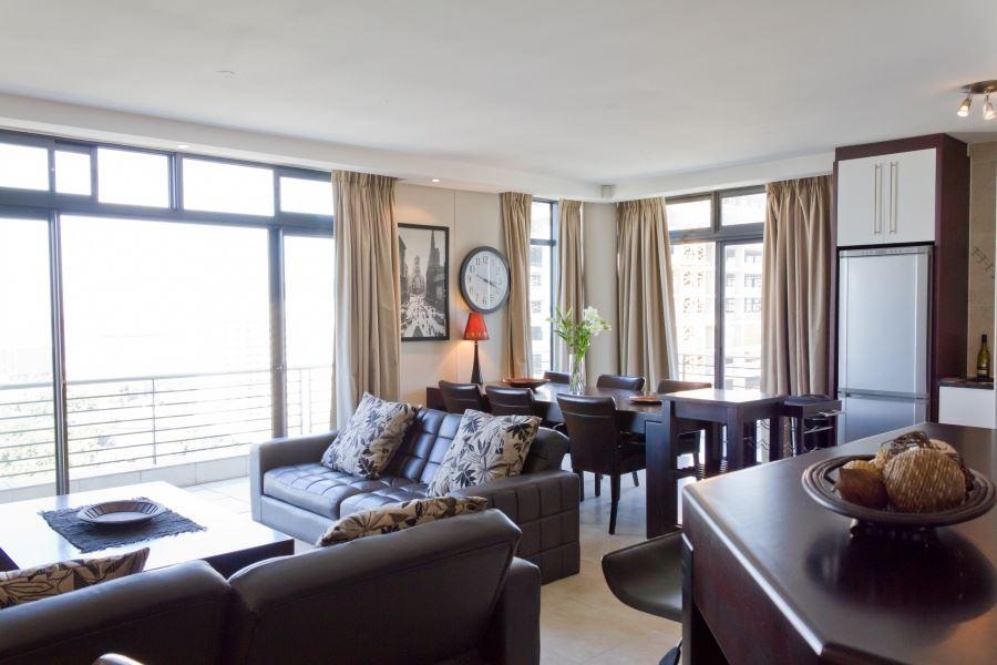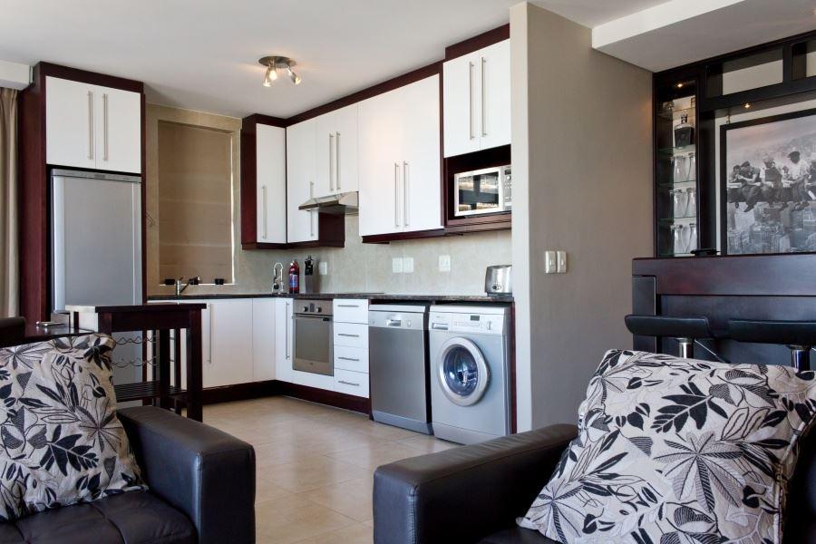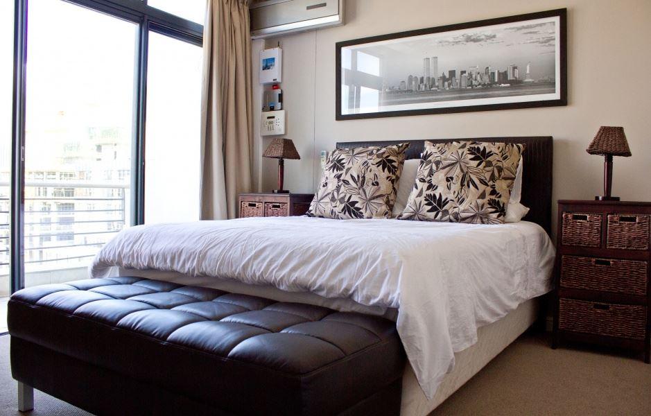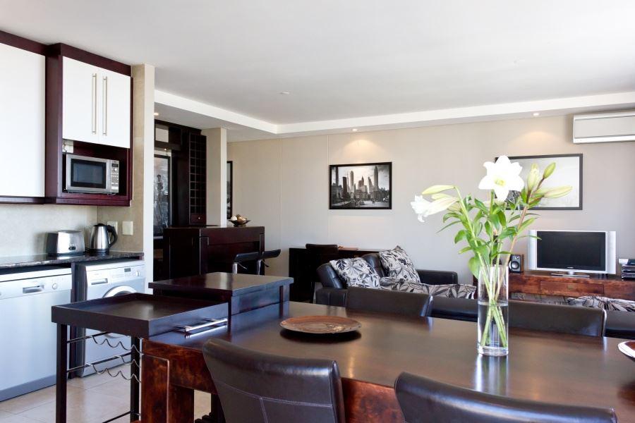 Dockside Apartment 1202 is a modern and stylish apartment situated in the heart of Cape Town’s De Waterkant area. The apartment is ideal for a couple or business traveller heading to the city. It is fully equipped for self-catering and has stunning views of the city.Located in the Dockside apartment building, this one bedroom apartment offers beautiful views of both Table Mountain and Green Point stadium. The apartment has an open-plan living area comprising a modern kitchen with a dishwasher, washing machine, stove and microwave. The living room is fully air-conditioned and has a