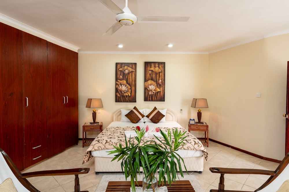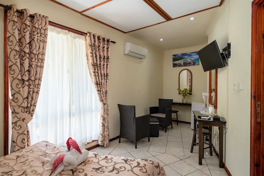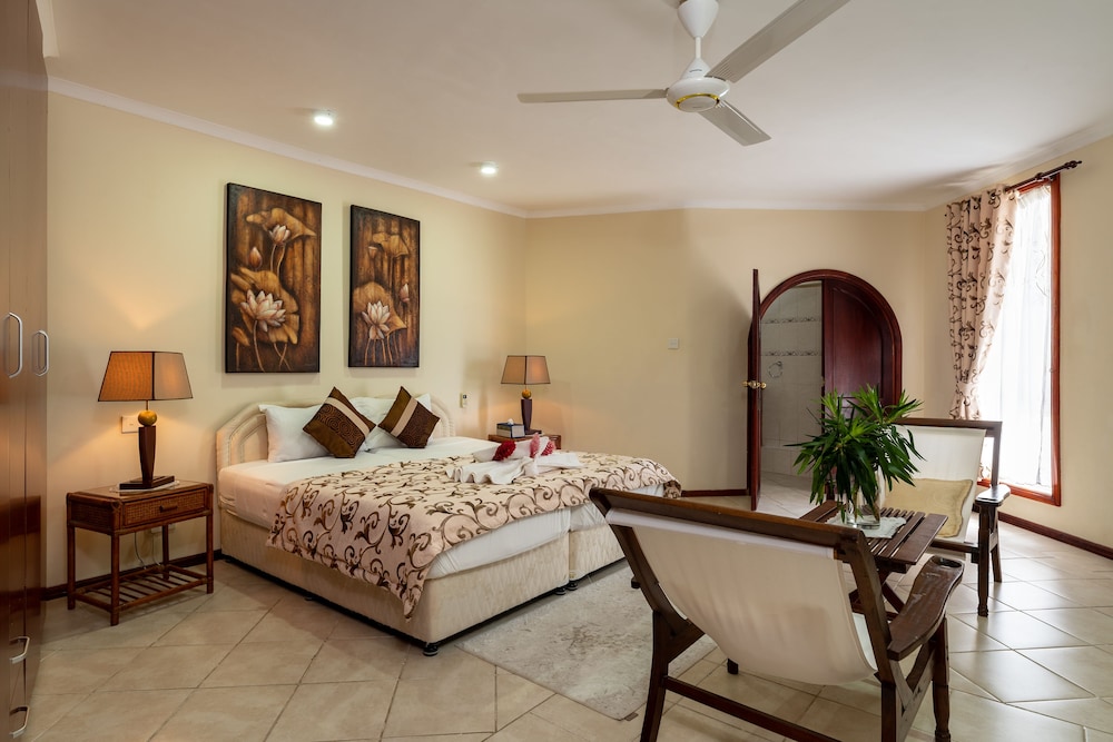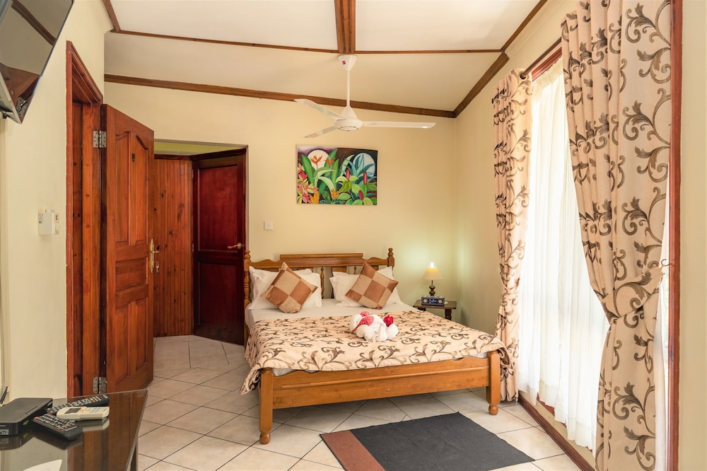Located to the north of the island of Mahe, Carana Hilltop Villa lies nestled in the rich tropically forested hills overlooking Carana Bay, with a view of Mamelles Island and the Praslin group. The villa offers the best of both worlds; whilst quiet and secluded it is just five minutes’ walk from the white sands and blue waters of Carana Beach, 10 minutes' drive from the colourful capital of Victoria and 20 minutes from the international airport. Driving 10 minutes southwest will take you to Beau Vallon Bay, the most popular beach on Mahe and the commercial centre for water sports, fishing and diving operations.