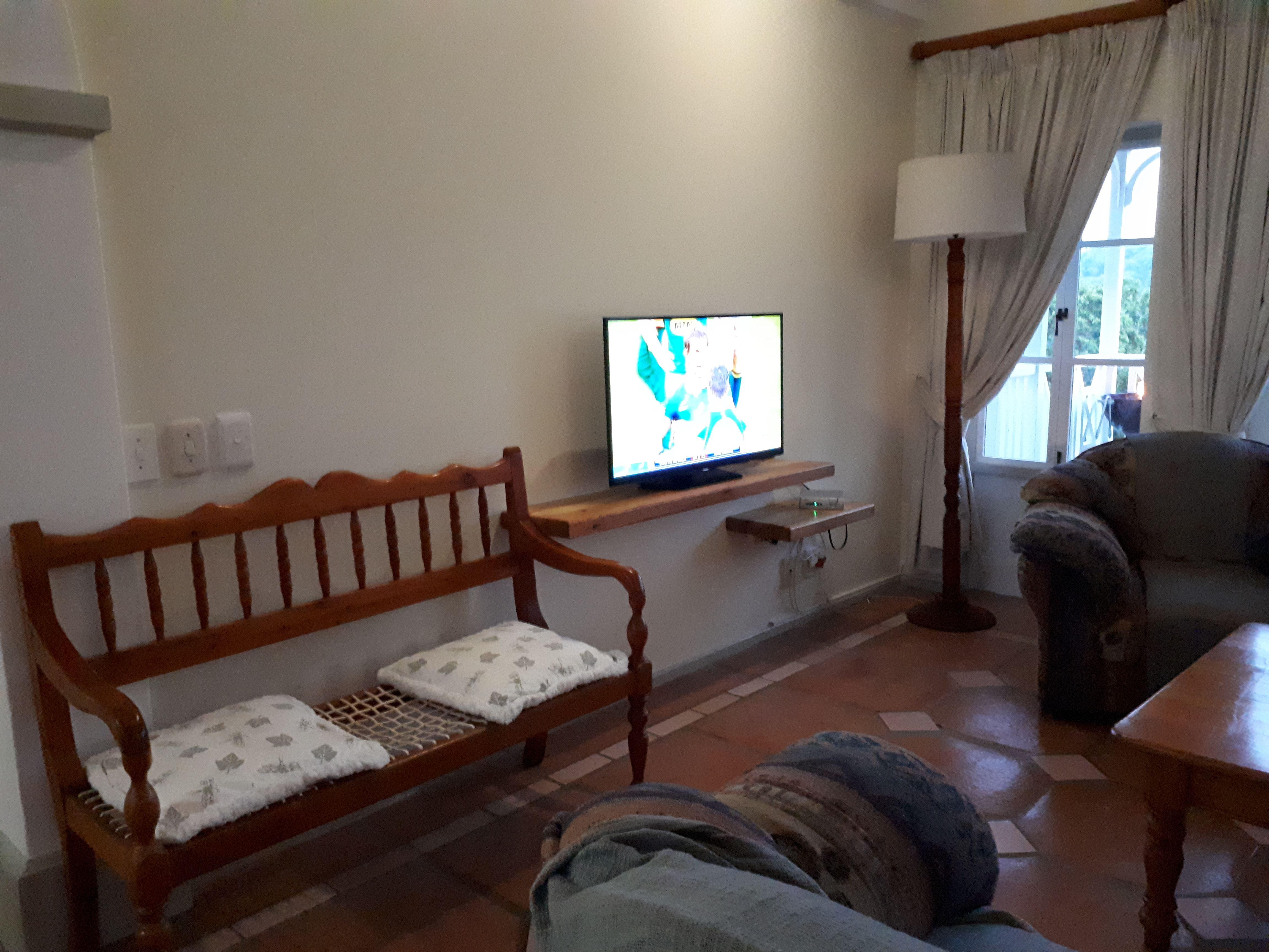 beds and the other room have two single beds. The main bedroom has an en-suite bathroom, TV with a package of DStv-channels. The second bathroom has a shower. Two of the bedrooms leads onto the balcony.