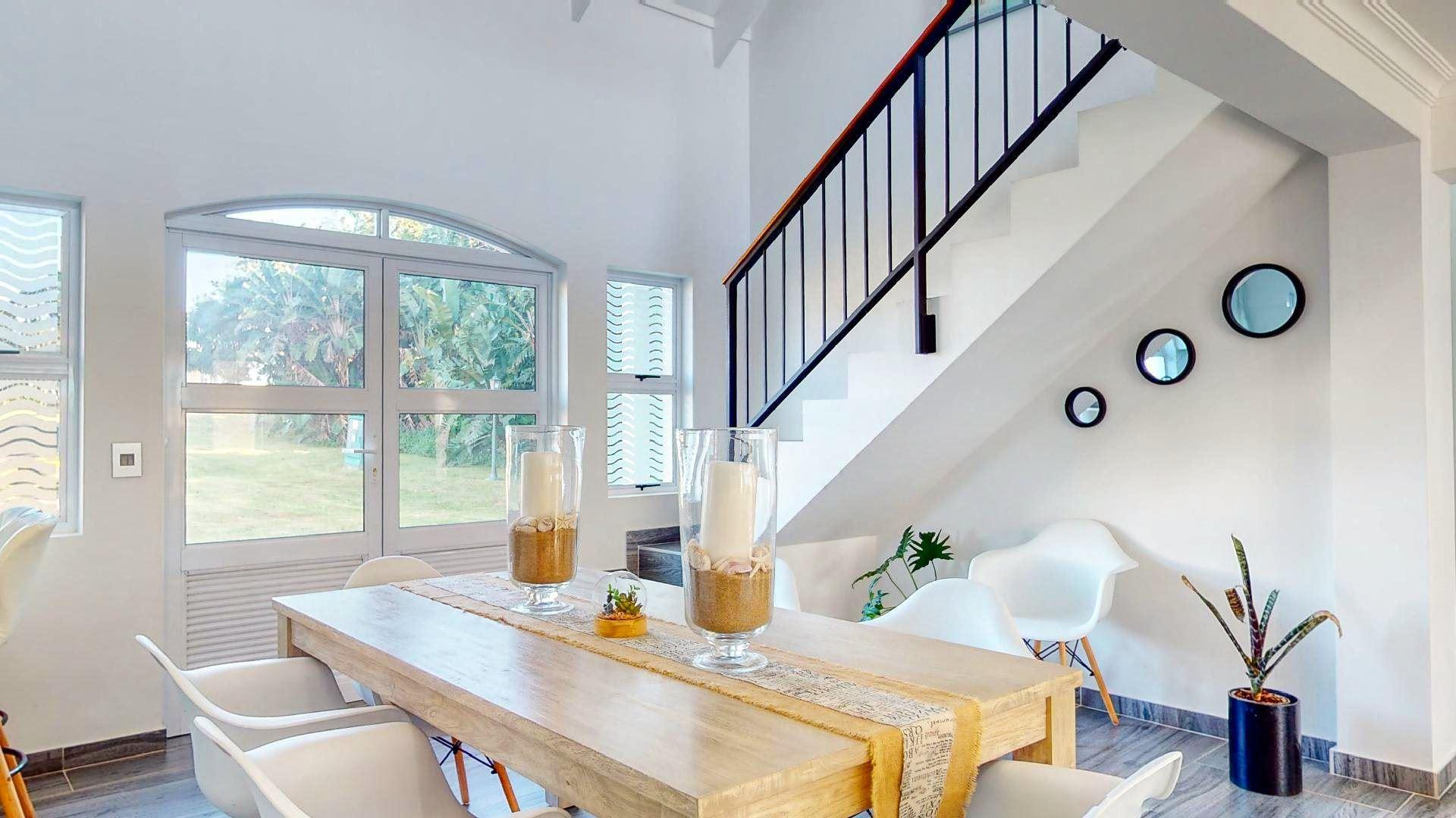Caribbean Estate Villa 1139 offers comfortable self-catering accommodation in a three-bedroom villa on the Caribbean Estate near Port Edward.The villa has three en-suite bedrooms and a loft room, and can accommodate six adults and two children. There are two bedrooms with a queen-size bed each, one bedroom with two single beds and a loft room with a sofa bed for two children. Bath and shower facilities are available.The villa has an open-plan kitchen, living and dining area. The kitchen is equipped for self-catering with a fridge, oven, stove and a microwave. The lounge