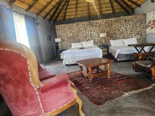 Experience the tranquil charm of Carlo's Mountain Lodge: Immerse yourself in the serenity of our eco-friendly retreat, where you can truly disconnect from the modern world and reconnect with nature. We are located 4.2 km from Usakos and about 50 km away from Spitzkoppe.At Carlo's Mountain Lodge, every guest enjoys the privacy of their own chalet or glamping tent, but the heart of the farm is our welcoming main building – a shared space designed for relaxation and connection.Here, you’ll find our open-plan lounge, dining area, and bar, perfect for unwinding after a day o