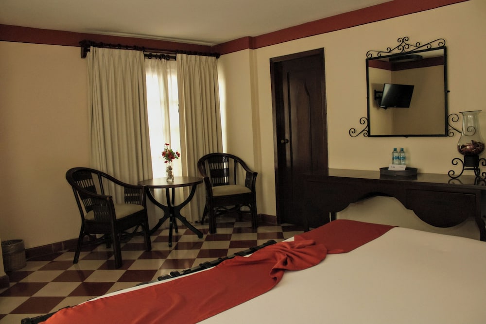 Just opposite the opera house and the university, we find this elegant typically Spanish colonial-style hotel at the heart of the historical centre. Public transportation is close by and the nearest beach is 30 km away. Facilities include a reception desk, a bar, and an air-conditioned restaurant, a public Internet terminal, room and laundry services and a car park and garage facilities for those arriving by car.