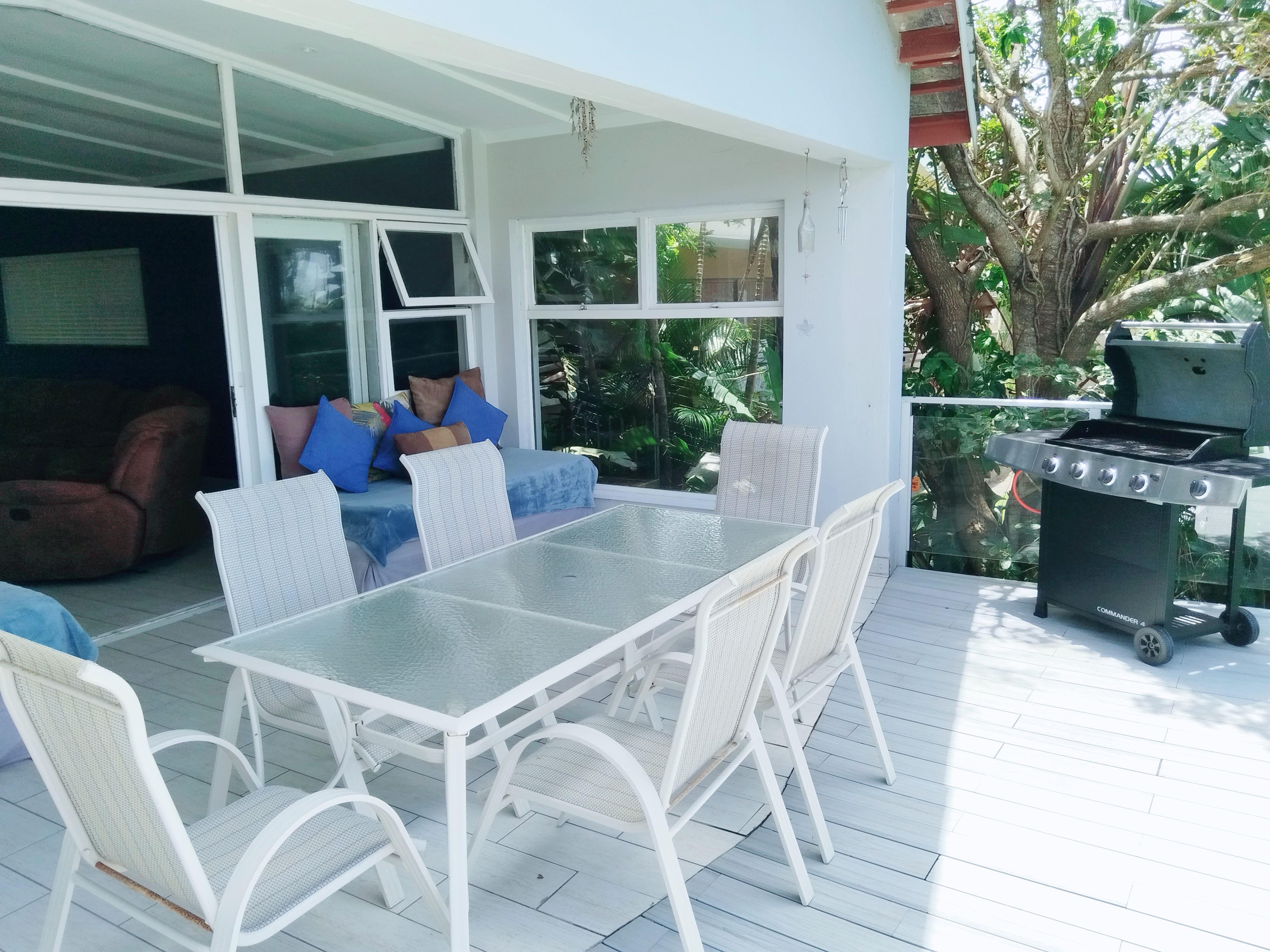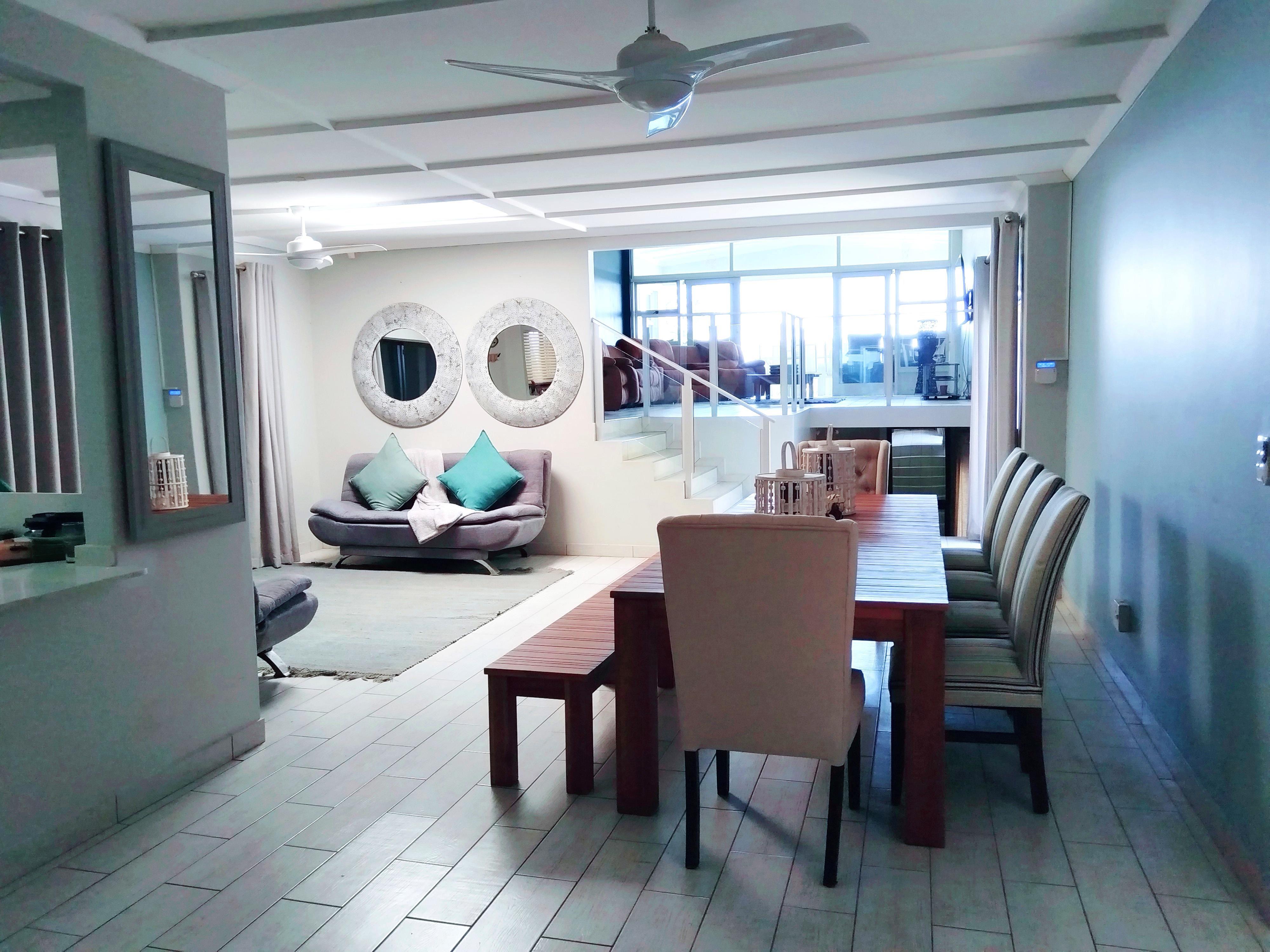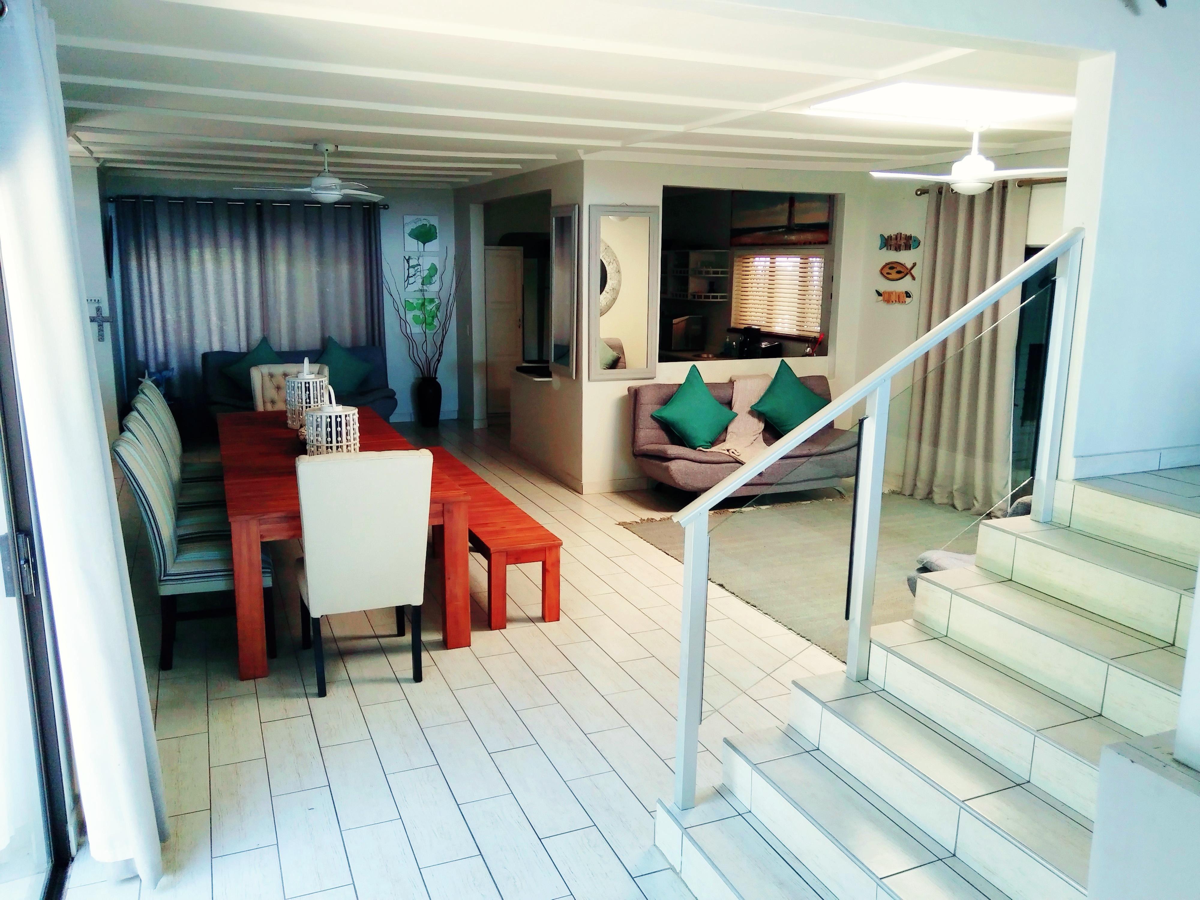 Casa Kacilia Uvongo offers comfortable self-catering accommodation in a spacious three-story villa located in Uvongo, KwaZulu-Natal. This charming retreat is ideal for creating lasting memories with friends or family and is pet-friendly for small dogs and other pets.The villa can accommodate up to 10 adult guests and 3 children, that can be accommodated on sleeper couches and features 4 bedrooms and 3 bathrooms. Three of the bedrooms are furnished with double beds, while the fourth bedroom includes a double bed and a bunk bed. The bunker beds can be separated to single beds in the
