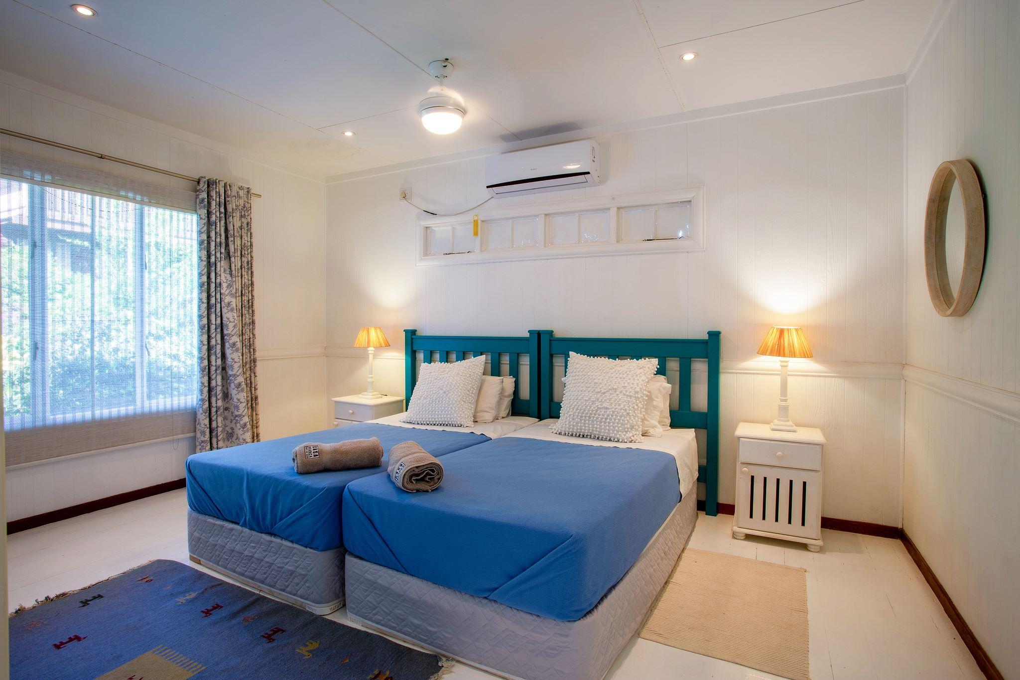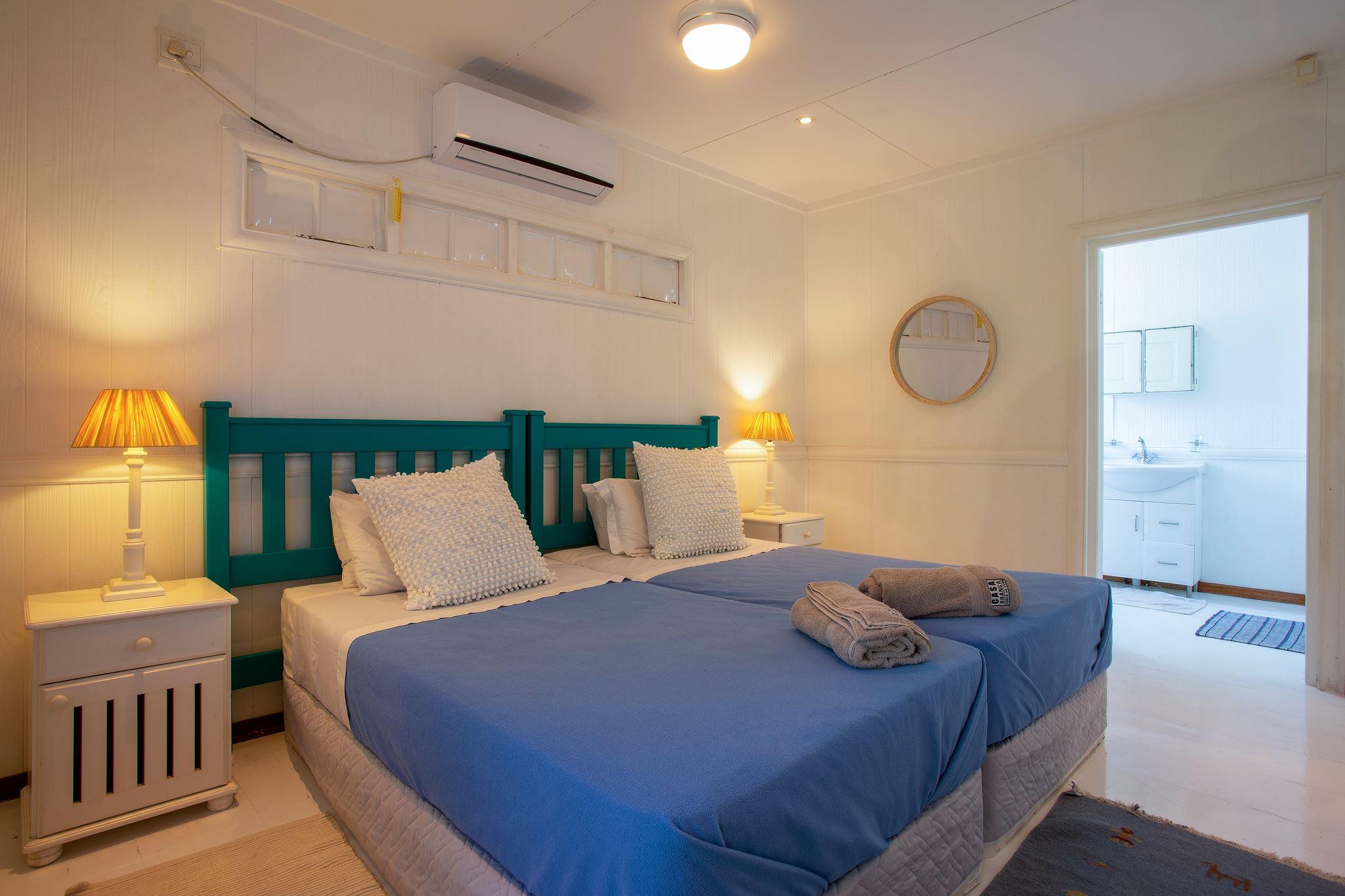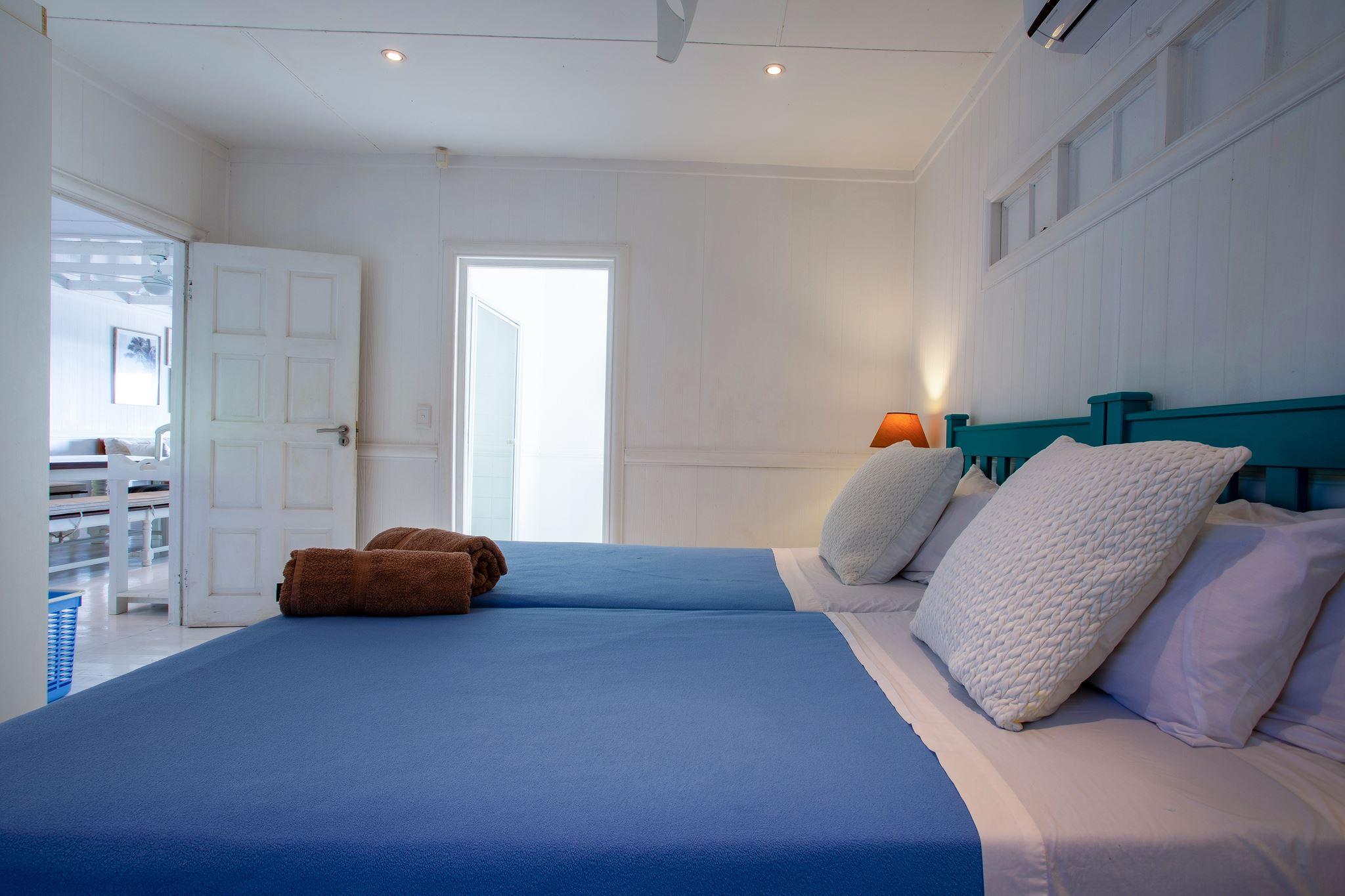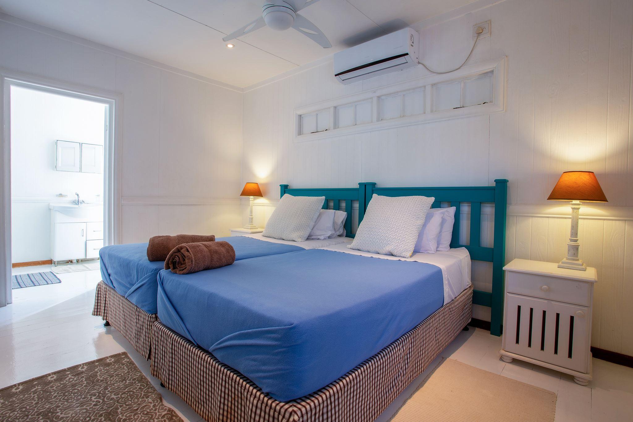 in 4 Bedrooms (All en-suite and air-conditioned)• Bedroom 1: 1 double bed or 2 single beds• Bedroom 2: 1 double bed or 2 single beds• Bedroom 3: 2 single beds• Bedroom 4: 2 single bedsSpacious & Stylish LivingThe open-plan k