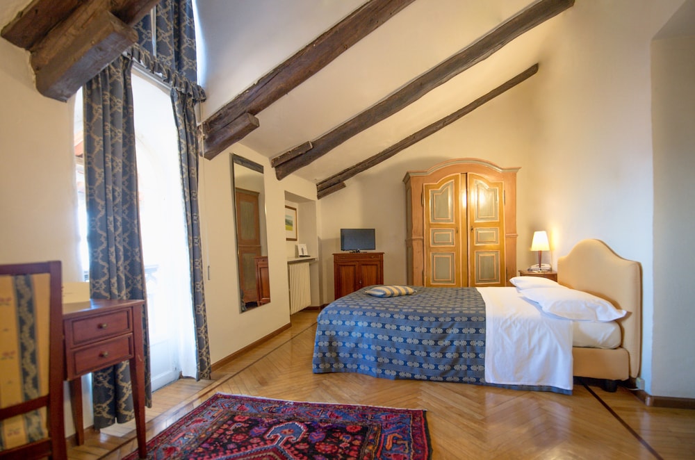 Enjoy the unique opportunity of staying in a totally renewed ancient castle of the 15th century surrounded by an English-style park between Saluzzo and Cuneo. Welcome to the Castello Rosso.The Castello Rosso is today an elegant establishment in a historic and cultural environment far from the noise and pollution of city life.Enjoy comfortable refined rooms and comprehensive facilities including a swimming pool a beauty centre and a meeting centre.The Castello Rosso is also famous for the high quality of its cuisine featuring contemporary interpretations of traditional Piedmont recipes fish dishes and a rich selection of wines.