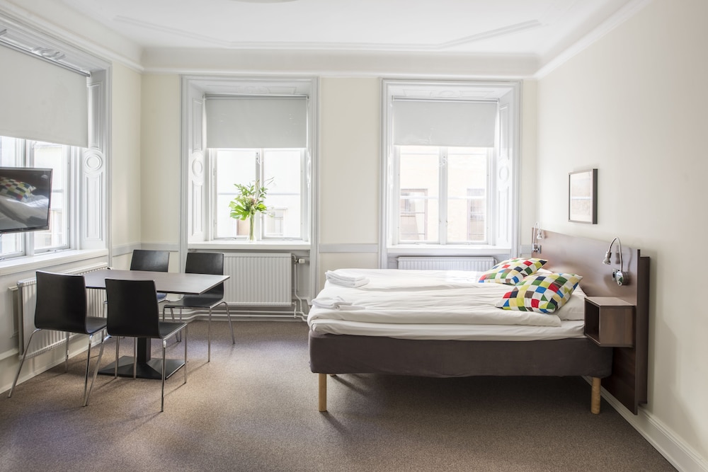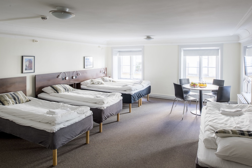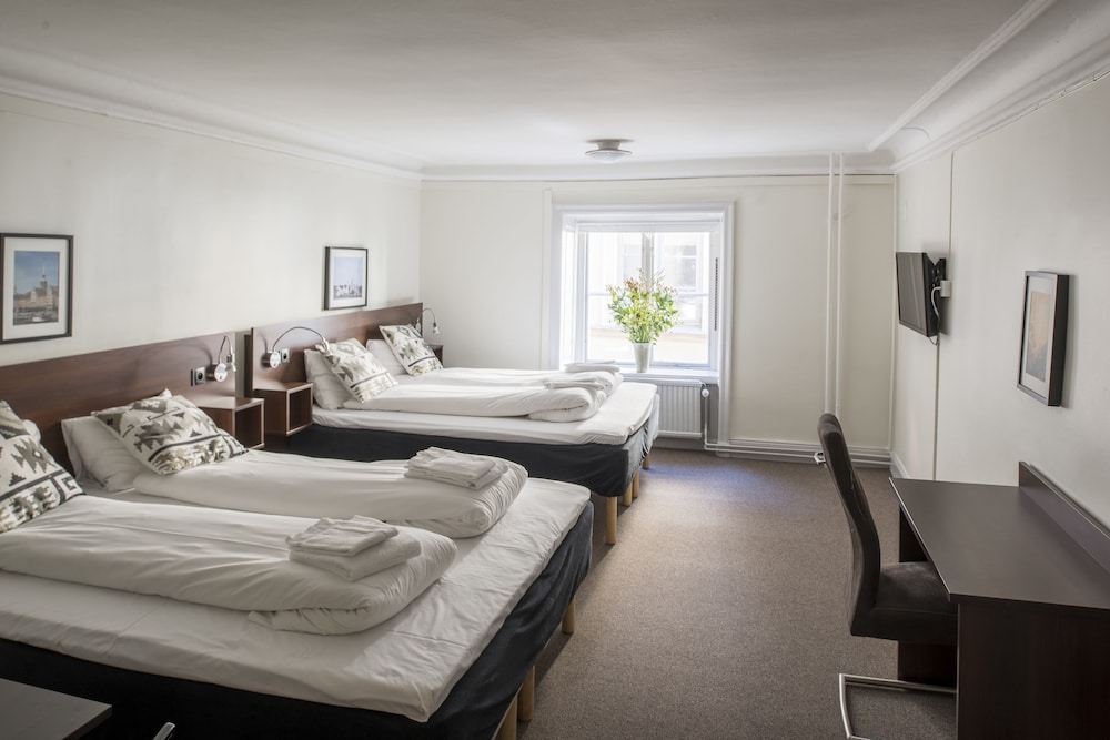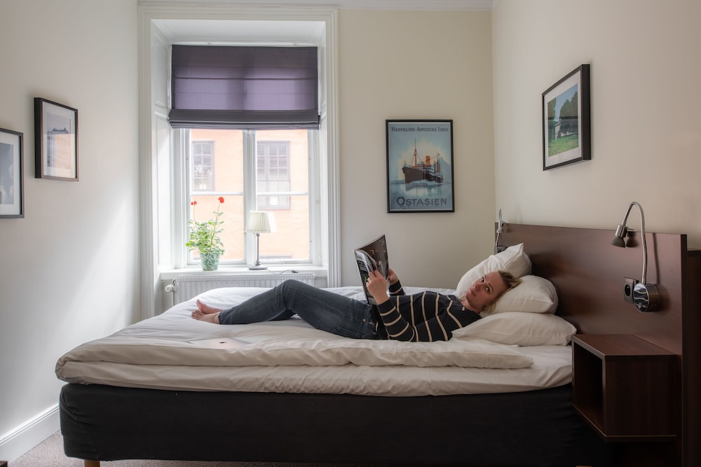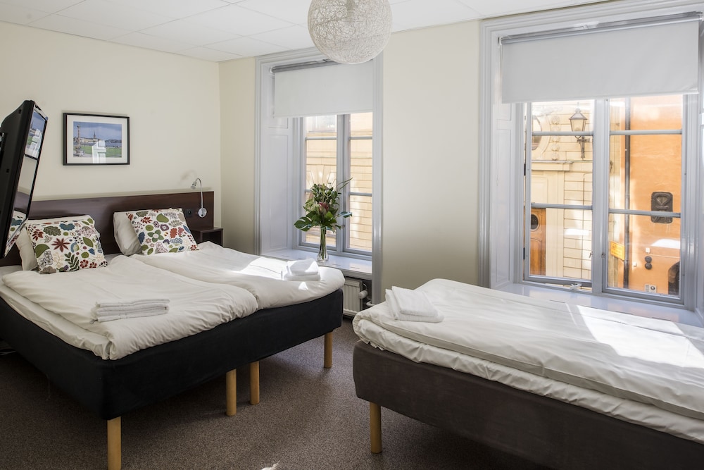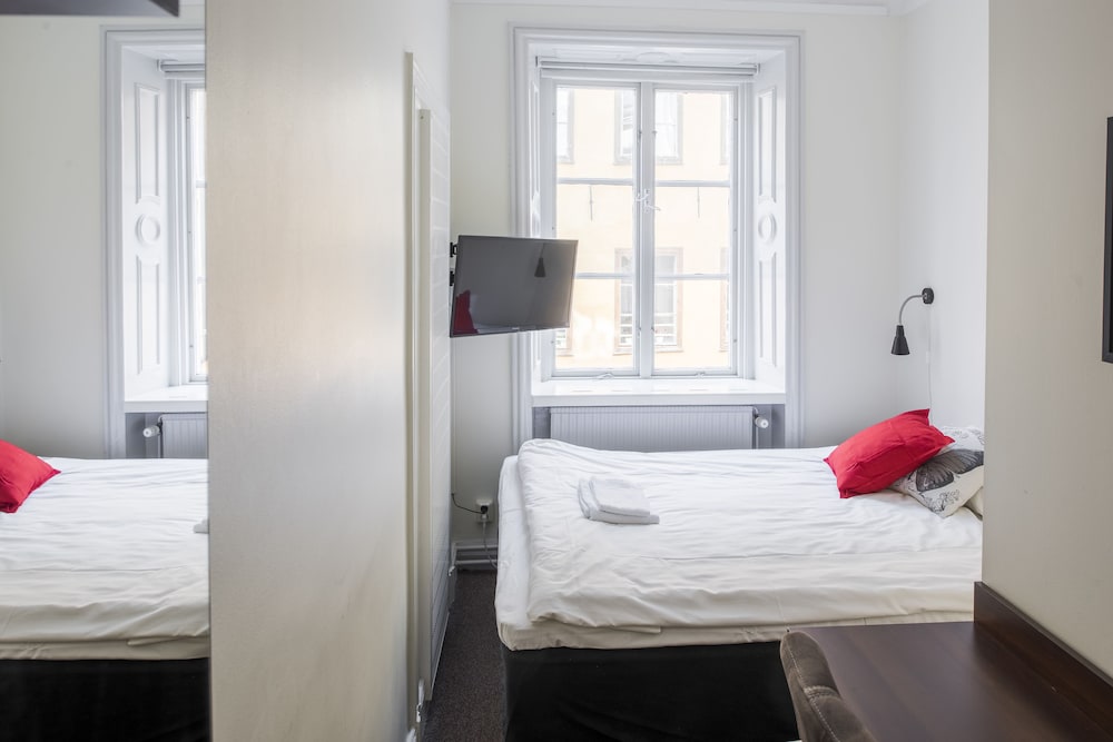 Tourist class hotel in a building from 1525, located in a small and quiet street just beside the Royal Palace, Stortorget Square and the Nobel Museum. Newly renovated and individually decorated rooms. All rooms with shared bath and shower on same floor in a separated room. Towels and sheets without extra cost. Complimentary wireless access throughout the hotel. All rooms are non-smoking. Breakfast is available for a fee (210 SEK/adult and 105/child). Snacks, refreshments and sandwiches available in the reception. Please note: The reception is open daily between 07.00 - 21.30. For arrivals after 21.30 please email [email protected]: Brunnsgränd 4, 11130 Stockholm, Sweden