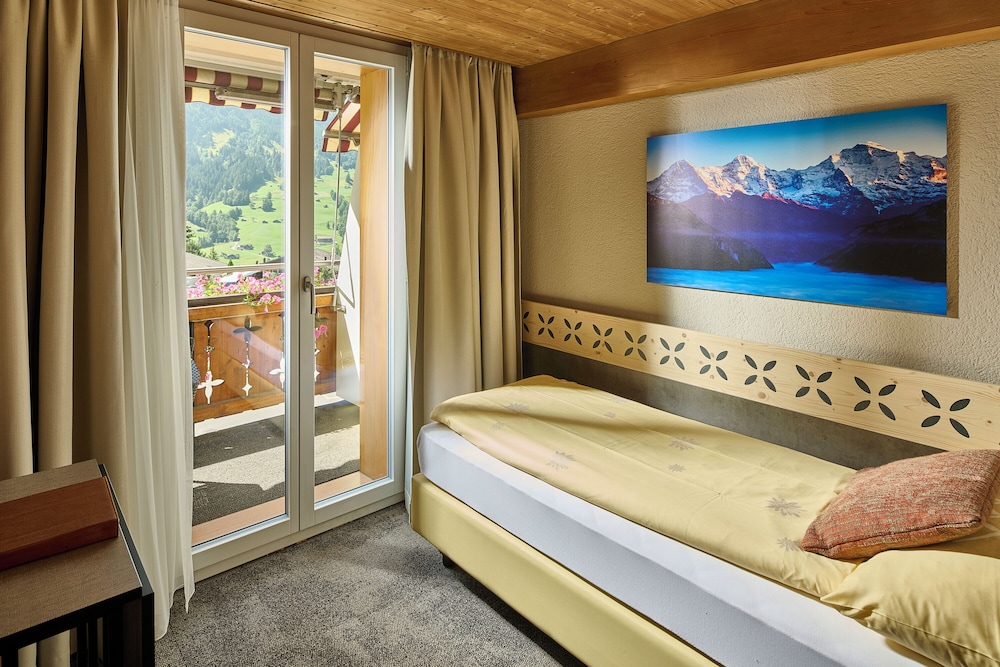 Facilities and services include wireless Internet access (extra charge), restaurant, elevator and conference room.Rooms feature heating, T.V, telephone, mini bar (extra charge), safe, hairdryer and bathroom.Family Rooms also feature a double room and a single room.Please note that some of the above facilities may be closed due to weather / seasonal conditions.Note: The visitor’s tax of CHF 4.70 per person/day is not included in the room rate and will be charged separately from the hotel.Address: Hauptstrasse, 3818 Grindelwald, Switzerland.