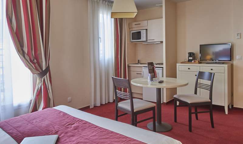 This Hotel-Residence is located in Yvelines on the banks of the River Seine. It sits between Saint-Germain-en-Laye and Reuil Malmaison, just 15 minutes from Paris. Citéa Chatou features spacious and comfortable living spaces. There are 48 fully-furnished, functional apartments that range from 20 to 40m². All are equipped with flat-screen TV and high-speed internet access.