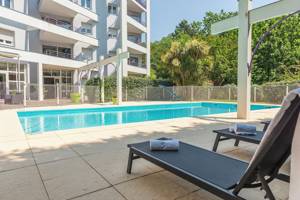The hotel is situated at the heart of the thermal district. The centre of Saint-Paul-lès-Dax is around 1.7 km away and the town of Dax is approximately 4.4 km away.This lakeside hotel features well-appointed apartments in a peaceful and relaxing setting. The residence has a total of 50 furnished apartments. Guests are welcomed in the lobby, which offers a hotel safe and a newspaper stand. Other facilities include a breakfast room, wireless Internet access and a car park.All apartments are en suite and feature a bath, as well as a hairdryer, satellite/cable TV and a radio. Each of the apartments also comes with a kitchen which is equipped with a fridge, cooker and microwave. They also feature large terraces equipped with garden furniture.Guests can enjoy use of the outdoor swimming pool. Parasols are also available.The hotel serves a breakfast buffet. You can take your meal in one of our restaurants partner, within walking distance or order sack lunch for sale at the desk (more information at the reception)Discover our relaxation area. Please contact the reception to book your care.Discover our relaxation area. Please contact the reception to book your care.