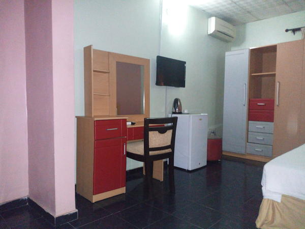 Chamcce Hotel is a budget hotel situated in Ajao Estate, Oshodi Isolo. The hotel boasts a restaurant and a bar. Chamcce Hotel's spacious accommodation units feature rooms varying from deluxe suites to executive suites with the latest modern furnishings. Each unit is equipped with amenities such as flatscreen TVs, minibars, wardrobes and air conditioning. The rooms have en suite bathrooms with jacuzzi tubs.Airport pickup, car-hire and babysitting services are available for guests upon request. Onsite parking is available and the premises are guarded by security personnel